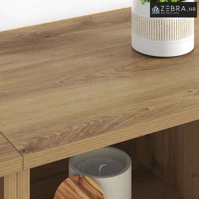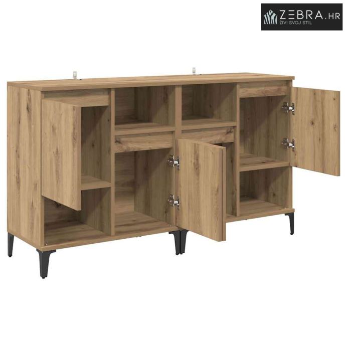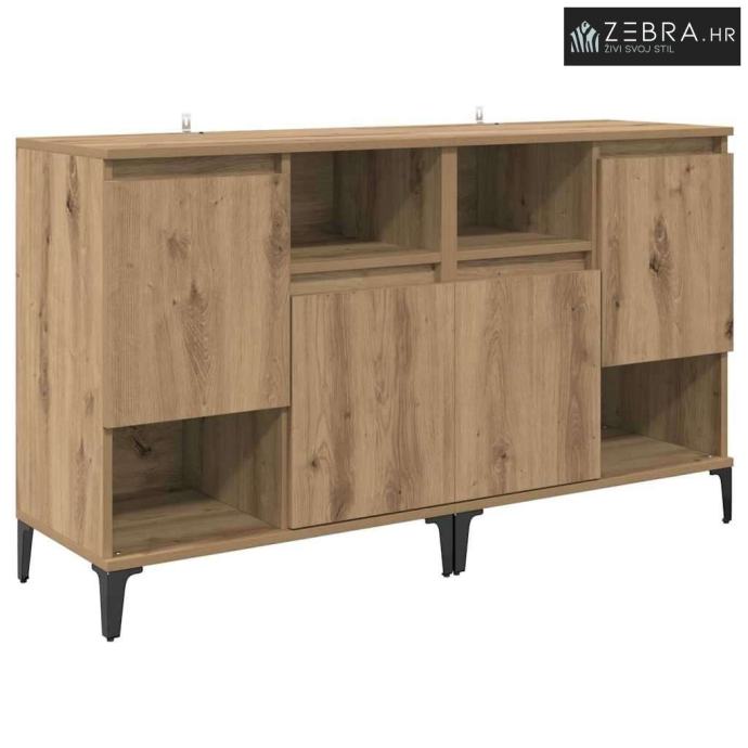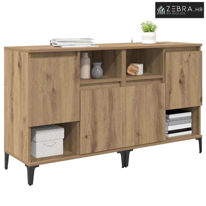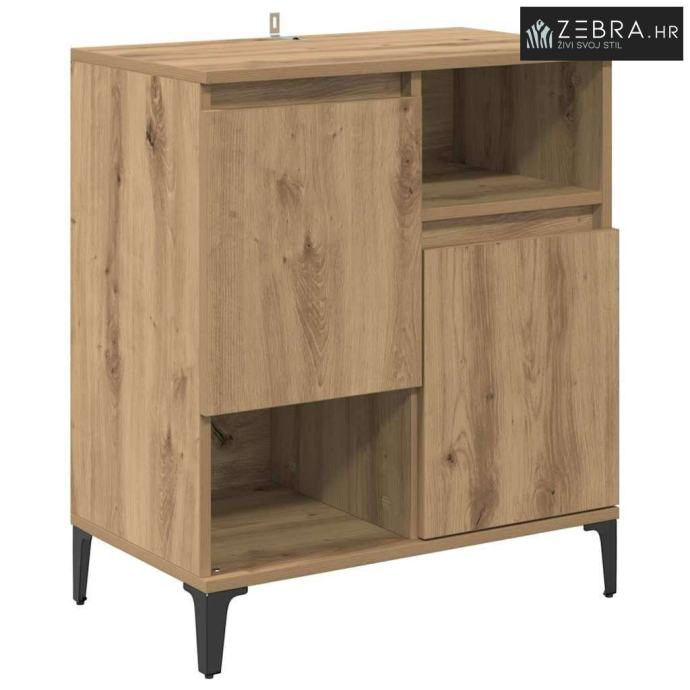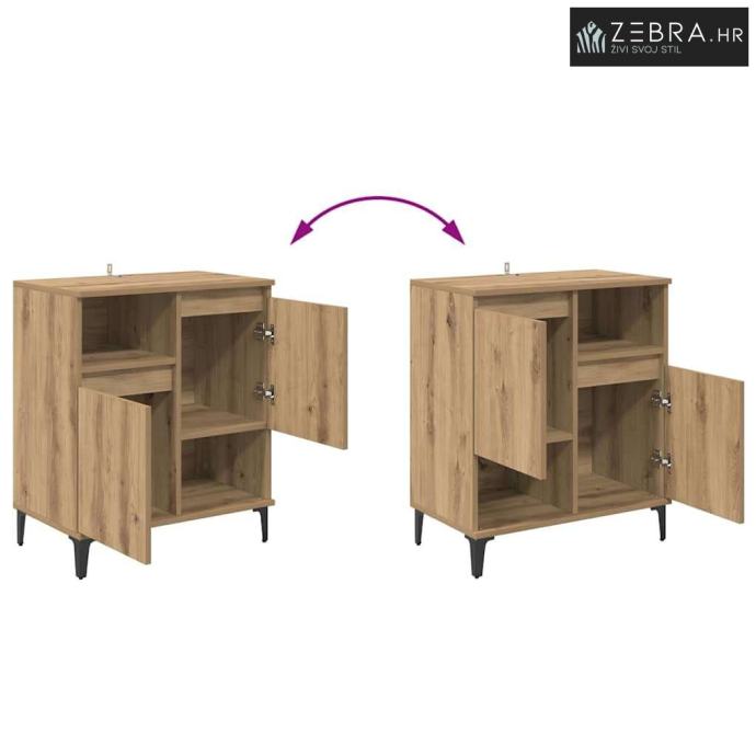 Kvalitetni materijali: Ovaj sideboard je od inženjerskog drveta, poznatog po izdržljivosti i glatkoj teksturi. Materijal osigurava dugovječnost i lako se uklapa u razne dekore. Njegova izrada jamči funkcionalnost na duge staze. Komponente: Sa podesivim policama, sideboard pruža zgodnu pohranu. Ima vrata s šarkama za lakši pristup, dok zadržava elegantan izgled koji traže moderni prostori. Funkcionalne karakteristike: Odličan je za apartmane i kuće gdje je optimizacija prostora bitna. Metalne noge osiguravaju stabilnost, a pri tom ne ometaju moderni izgled. Preporučena upotreba: Sideboard se savršeno uklapa u blagovaonice i kuhinje. Efikasno drži posuđe, pribor za jelo i druge kućne potrepštine, pružajući praktičnost i estetski dojam. Upute za njegu: Da biste održali njegov izgled, obrišite ga suhom krpom i izbjegavajte jako abrazivne kemikalije. Preporuča se pričvrstiti ga za zid kako ne bi pao, osiguravajući sigurnost u domaćinstvu. Boja: Umjetnički hrast