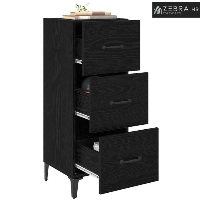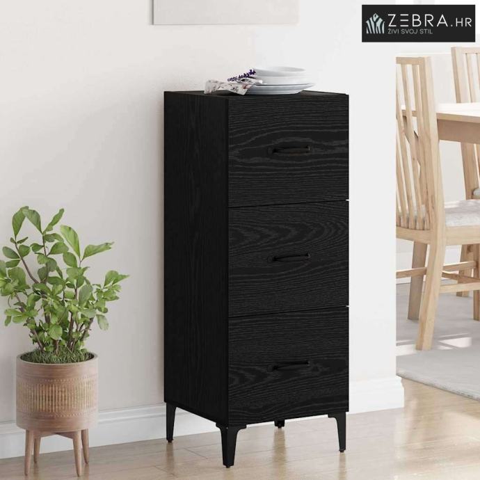 Izdržljivi materijali: Ova komoda je napravljena od konstruiranog drva, koje daje jak i dugotrajan okvir za svakodnevnu upotrebu. Materijal stvara ravnotežu između prirodne ljepote i čvrstoće, čineći da ostane pouzdana u vašem domu. Metalni dijelovi: Ručke i noge komode su od robusnog metala, koji se odlično uklapa s bojama konstruiranog drva, a pruža dodatnu stabilnost. Ovaj pametan izbor osigurava dugovječnost komode, tako da će vas služiti godinama. Glatka tekstura dodaje malo sofisticiranosti. Obilni prostori za pohranu: Sa prostranim odjeljcima i ladicama koje se lako otvaraju, organizacija vaših stvari postaje jednostavna. Ladice se lako koriste, omogućujući brz pristup svojim stvarima. Ovaj raspored je pažljivo osmišljen kako bi zadovoljio razne potrebe za pohranom uz dozu elegancije. Funkcionalan dizajn: Ova komoda je spoj funkcionalnosti i stila, s D-ručkom koja olakšava korištenje. Ova značajka dodaje praktičnost, olakšavajući pristup sadržaju, poboljšavajući vaša rješenja za pohranu i unapređujući karakter vašeg doma. Laka njega: Samo obrišite ovu komodu vlažnom krpom kako biste zadržali njen sjaj. Ova jednostavna uputa za njegu osigurava da će komoda zadržati svoj šarm i integritet tijekom dugotrajne upotrebe, bez dodatnog truda s vaše strane. Boja: Crni hrast
