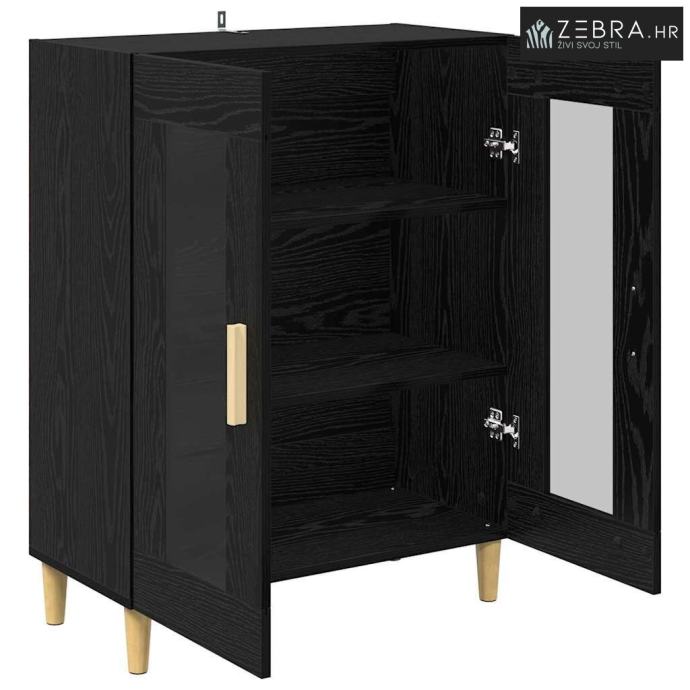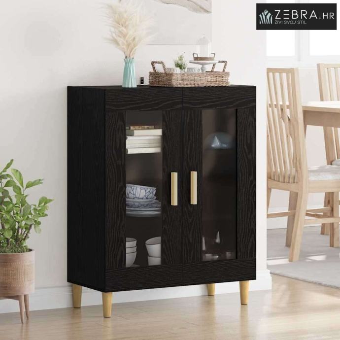 Konstrukcija od konstruiranog drveta: Sideboard je napravljen od kvalitetnog konstruiranog drveta, što osigurava stabilnu i izdržljivu strukturu koja odolijeva deformacijama i svakodnevnom korištenju. Ovo drvo je popularno zbog svoje izdržljivosti i otpornosti na vlagu, što garantira dugovječnost i privlačnost. Prozirna staklena vrata: Otvorite prozračna staklena vrata i otkrijte prostrane police, savršene za izlaganje dragocjenih kolekcija ili često korištenih stvari. Prozirnost dodaje elegantan dojam, organizirajući vaše predmete na stilan način i spajajući funkcionalnost s modernim dizajnom. Bež sužene noge: Ove noge pružaju stabilnost i moderan izgled, a suženi dizajn dodatno ističe estetiku sideboarda. Njihova suptilna elegancija pomaže u stvaranju ravnoteže u vašem domu. Polirane bar ručke: S poliranim ručkama u bež boji, dodaju šik dodir sideboardu i olakšavaju korištenje, podižući njegov moderan izgled. Sjaj ručki donosi sofisticiranost, integrirajući se u suvremeni dekor. Laka održivost: Održavanje ovog sideboarda je super jednostavno, samo ga obrišite vlažnom krpom za svakodnevno održavanje. Pridržavajte se uputama za učvršćivanje na zid i uživajte u njegovoj stabilnosti. Boja: Crni hrast