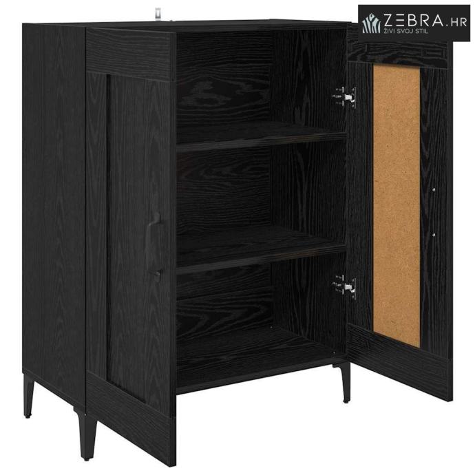 Izrađeno od konstruiranog drva Ova komoda je rađena od kvalitetnog konstruiranog drva, što joj daje stabilnost i lijep izgled. Glatka tekstura čini je savršenom za svaki moderni prostor, a drvo je otporno na pucanje i savijanje, što znači da će dugo trajati. Učinkovit dizajn za pohranu Komoda dolazi s puno polica, pružajući ti dovoljno mjesta za organiziranje svih tvojih stvari. Ovaj dizajn je odličan za pohranu posuđa, knjiga ili dekoracija, što čini prostor urednim. Metalne drške i noge Ova komoda ima izdržljive metalne drške i noge, koje joj daju jaku konstrukciju. D-Pull drške olakšavaju pristup stvarima, a noge pružaju stabilnost. Sustav vrata sa šarkama Vrata s šarkama omogućuju lako otvaranje i zatvaranje, pa je jednostavno doći do svega što pohranjuješ. Ovo poboljšava funkcionalnost i daje komodi moderni izgled. Jednostavno održavanje Ova komoda se lako održava, treba ti samo vlažna krpa za čišćenje. Takav mali trud osigurava da komoda ostane u super stanju, što je čini pouzdanim dijelom tvoje prostorije. Boja: Crni hrast
