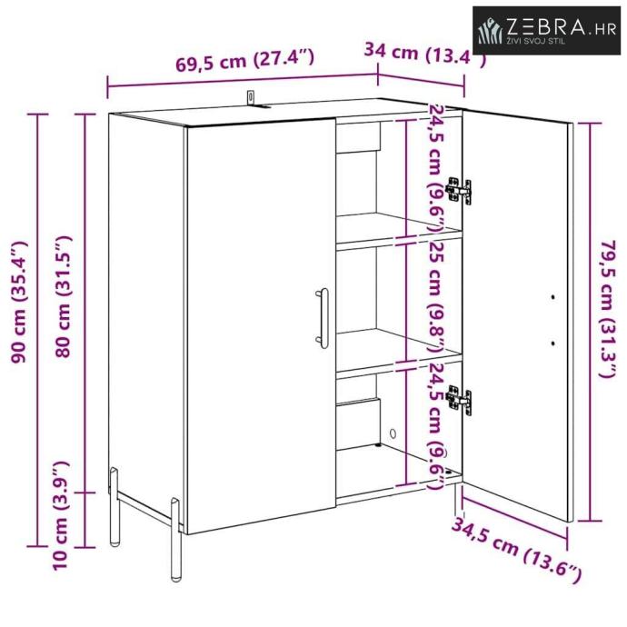 Sveukupne dimenzije: 69,5 x 34 x 90 cm (D x Š x V)
