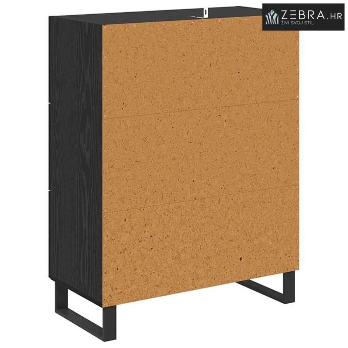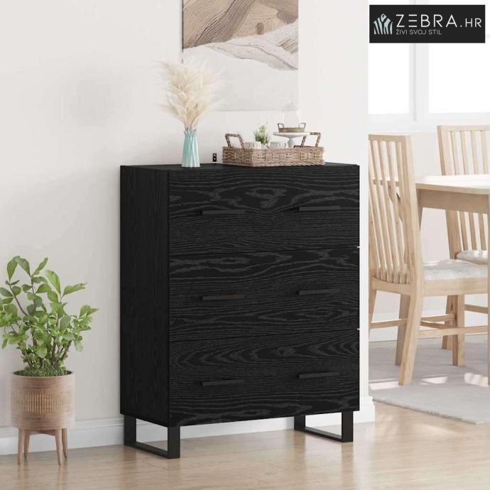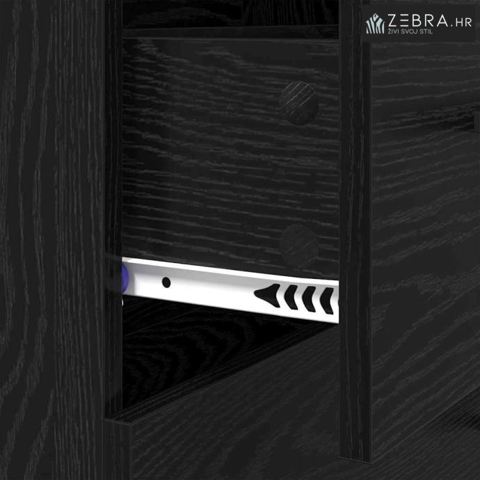 Materijali: Izrađena od konstruiranog drva, komoda ima čvrsti okvir koji kombinira toplinu i izdržljivost. Ovaj materijal pridonosi dugotrajnosti i održava rustikalni šarm, osiguravajući ugodan ambijent uz praktična rješenja za skladištenje. Uključeni sastavni dijelovi: Komoda dolazi s ladicama na kugličnim ležajevima za lagano otvorenje, mat crnim ručkama i čvrstim željeznim nogama za stabilnost. Sve komponente odabrane su za jednostavno korištenje, poboljšavajući svakodnevnu funkcionalnost. Značajke / Funkcija / Dizajn: Ova komoda je trebala biti središnji komad u svakoj sobi, lako se održava, a njezina velika skladišna kapaciteta s ladicama i policama pomaže da se životni prostor drži urednim. Preporučene upotrebe: Savršena za dnevne boravke i blagvaonice, ova komoda će se prilagoditi raznim prostorima, služeći i kao skladište i prostor za ukrasavanje. Njena fleksibilnost čini je odličnim izborom za domove kojima je potrebna višenamjenska rješenja. Briga i održavanje: Da bi zadržala svoj izgled, komodu treba brisati vlažnom krpom redovito nakon korištenja i složiti prema uputama radi stabilnosti. Također, važno je pričvrstiti je za zid za sigurnost, posebno u domovima s djecom ili aktivnim prostorima. Boja: Crni hrast