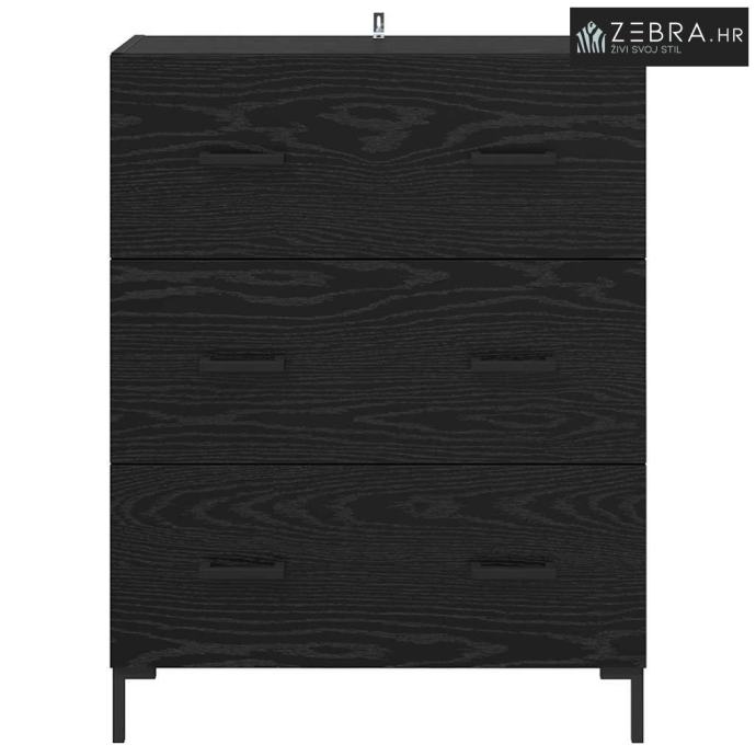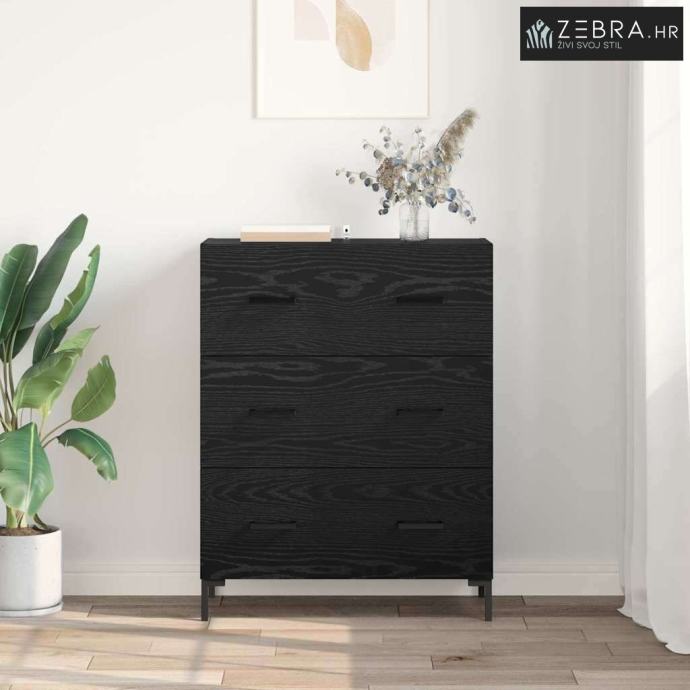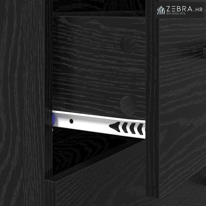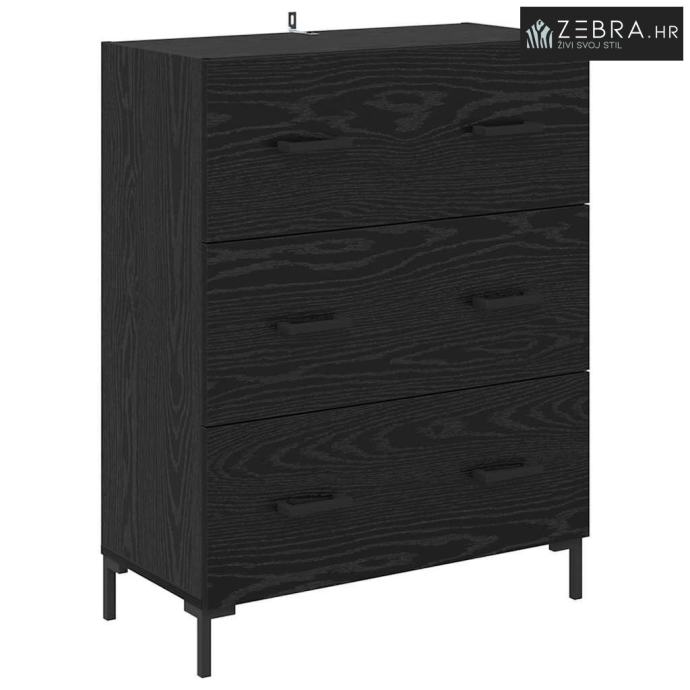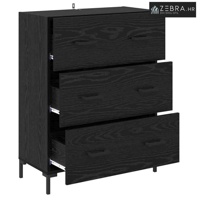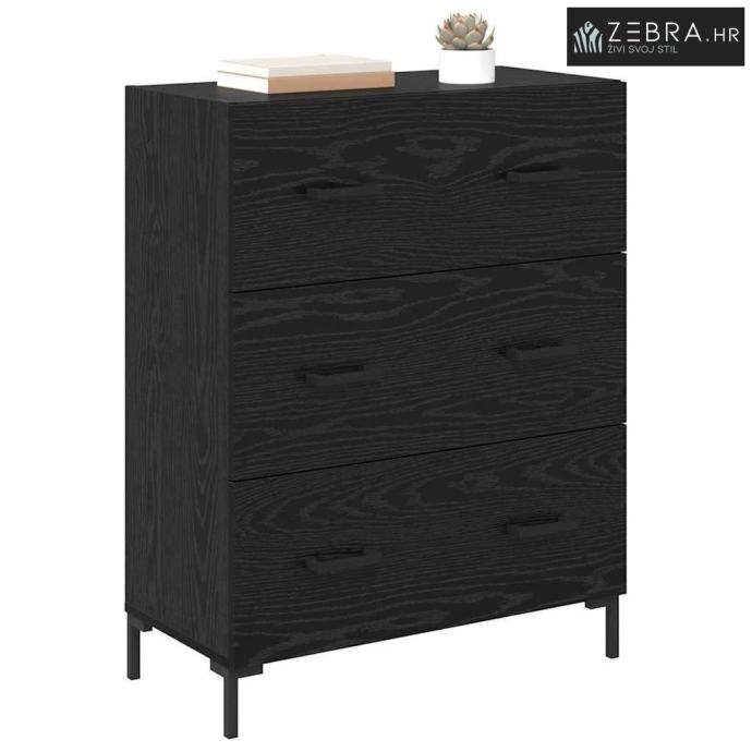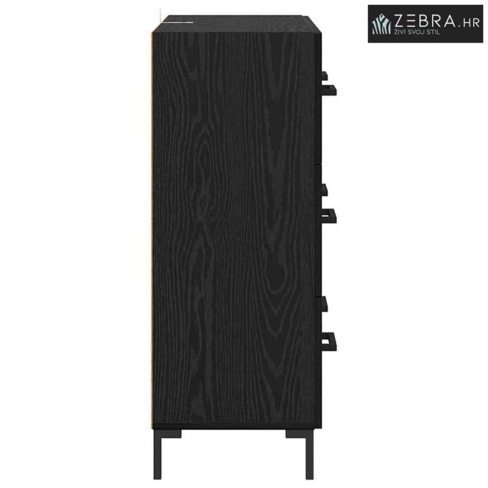 Konstruirano drvo i željezo: Ova kombinacija daje kabinetu trajnost. Čvrste noge osiguravaju stabilnost, dok drvo nudi elegantan izgled. Tako ova kombinacija jamči dugovječnost i estetski privlačan proizvod. Prostrano skladište: Kabinet je osmišljen tako da ima dovoljno prostora za pohranu posuđa, knjiga i drugih potrepština. Pametno osmišljene ladice imaju mjesta za male predmete, dok veća površina može smjestiti veće stvari, pomažući u očuvanju reda. Mat finiš komponente: Ova mat završna obrada dodaje sofisticiran izgled. Neodbojna površina daju kabinetu profesionalan izgled, savršen za moderne interijere, pridonoseći i estetici i funkcionalnosti. Ladice s kugličnim ležajevima: Uživajte u glatkom otvaranju ladica zahvaljujući kugličnim ležajevima. Svako povlačenje je tiho, čime se svakodnevna upotreba ponaša jednostavno i ugodno. Ova značajka jamči da je sve funkcionalno i mirno, čak i uz čestu upotrebu. Jednostavne upute za njegu: Održavanje je lako; samo obrišite vlažnom krpom. Pobrinite se da je kabinet čvrsto sastavljen prema uputama i pričvrstite ga za zid kako biste spriječili prevrtanje, osiguravajući time mir i dugovječnost. Boja: Crni hrast