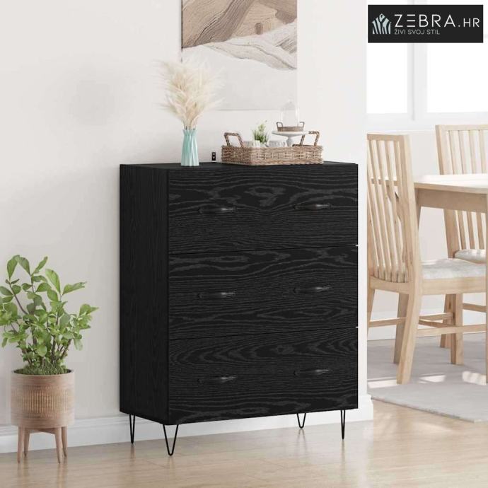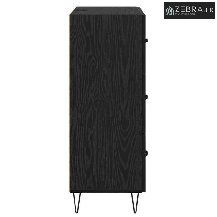 Izdržljiva konstrukcija od konstruiranog drva: Ova komoda je napravljena od kvalitetnog konstruiranog drva koje osigurava dugotrajnost i privlačan izgled. Robusna građevina podnosi svakodnevnu upotrebu, a njezin moderan izgled dodaje šarm vašem prostoru. Svestrani dijelovi: Ova komoda s više ladica i odjeljaka nudi odličnu organizaciju. Ladice s kugličnim ležajevima omogućuju tiho i lako otvaranje, bez obzira na to što pohranjujete. Praktičan dizajn: Lako se održava – površine se mogu jednostavno obrisati vlažnom krpom za očuvanje izgleda i dugovječnosti. Idealna je za brza kućanstva gdje praktičnost igra veliku ulogu. Rustikalna estetika: S željeznim nogama i mat ručkama, ova komoda donosi prirodan ugođaj u prostor. Savršena je za rustikalne ili seoske stilove, dodajući toplinu i dobar ambijent. Promišljeno održavanje: Da bi se osigurala dugotrajna upotreba, preporuča se pričvrstiti je na zid. Minimalna montaža je potrebna, a bit će lako instalirati uz pomoć jedne ili dvije osobe. Ova sigurnosna mjera pomaže u stabilizaciji komode. Boja: Crni hrast