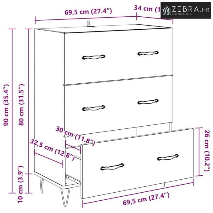Sveukupne dimenzije: 69,5 x 34 x 90 cm (D x Š x V)