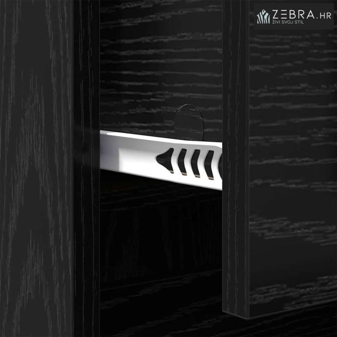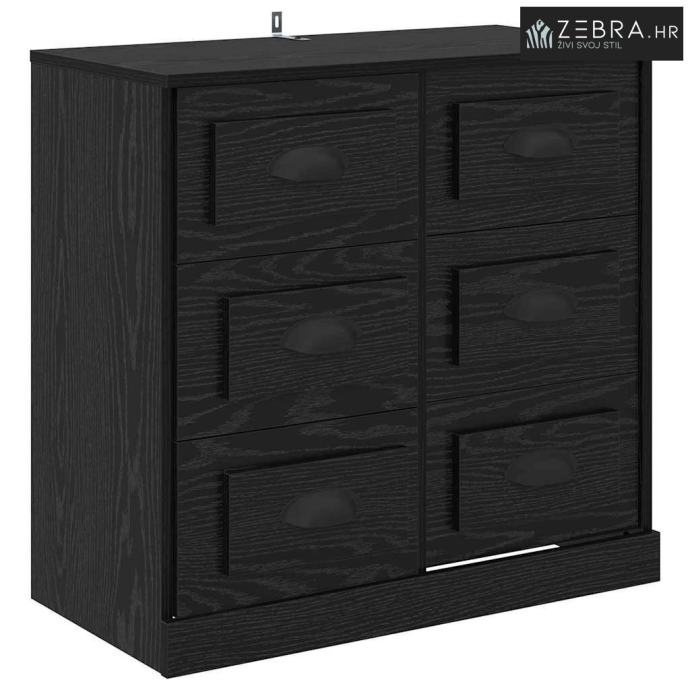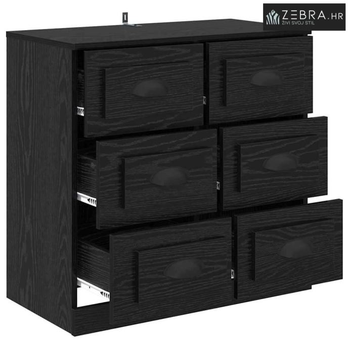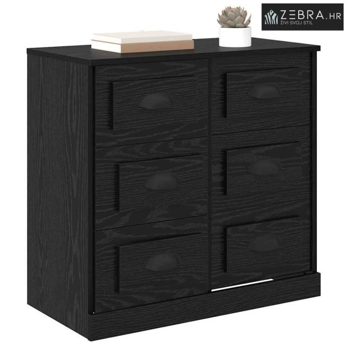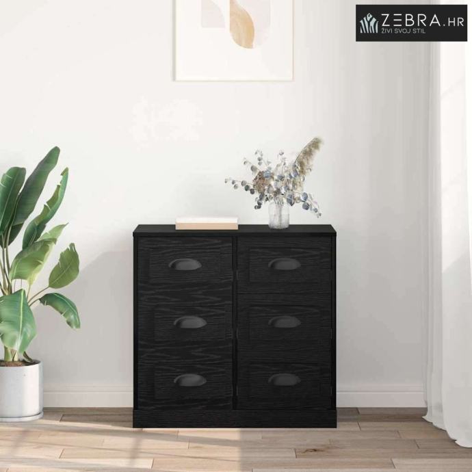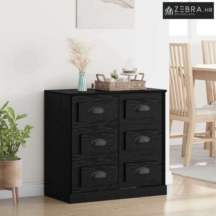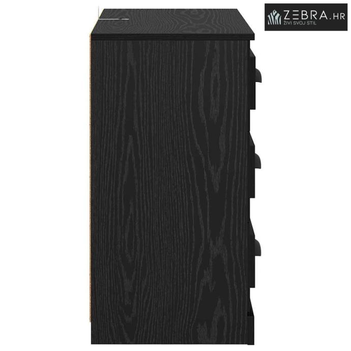 Materijali: Izrađen od kvalitetnog konstruiranog drveta, ovaj sideboard je izdržljiv i stilski. Glatka tekstura drveta savršeno se uklapa u svaki interijer i otporan je na savijanje, osiguravajući stabilnost. Uključeni komponenti: S D-ručkama, vrata se otvaraju lako, omogućavajući brz pristup ladicama. D-ručke imaju mat završnu obradu koja dodaje suptilnu eleganciju. Karakteristike: Ladice s kugličnim ležajevima omogućuju tiho otvaranje, a prostrani odjeli čine ovu jedinicu funkcionalnim hitom za održavanje reda. Preporučene upotrebe: Ovaj sideboard je dizajniran za unutarnju upotrebu, savršen za dnevne sobe i blagovaonice. Idealno skladište za posuđe ili elektroniku. Njega i održavanje: Održavajte površinu čistu redovitim brisanjem vlažnom krpom. Lako se sastavlja; slijedite upute i pričvrstite uz zid kako ne bi pala. Boja: Crni hrast