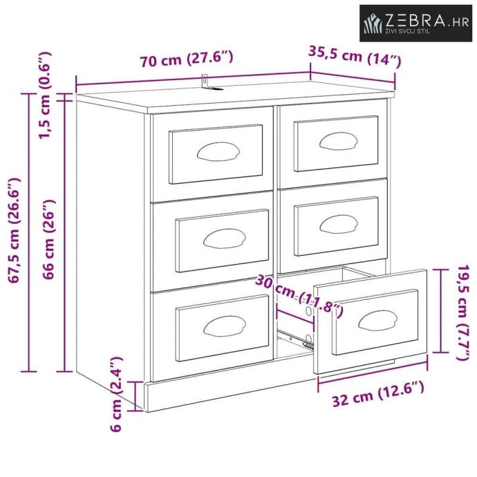 Sveukupne dimenzije: 70 x 35,5 x 67,5 cm (D x Š x V)