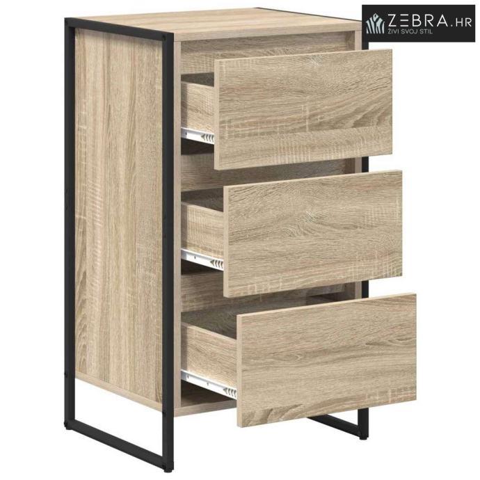 Čvrsto konstruirano drvo: Komoda je napravljena od konstruiranog drveta koje pruža pouzdanu čvrstoću i stabilnost. Ovaj materijal oduševljava svojim prirodnim drvenim teksturama, što dizajnu dodaje stil, poboljšavajući izgled svakog prostora. Robusne čelične noge: Čelične noge osiguravaju stabilnost, tako da komoda ostaje čvrsto na mjestu. Čelična konstrukcija daje dodatnu čvrstoću, pa može izdržati razne upotrebe, od ukrašavanja do pohrane osnovnih stvari. Prostrana pohrana: S raznim odeljcima i policama, komoda nudi dovoljno prostora za organizaciju svih vaših stvari. Idealan je za sve, od knjiga i DVD-ova do posuđa i malih aparata, pomažući vam da održite red. Moderne dizajnerske nijanse: Minimalistički izgled komode savršeno se uklapa u njen industrijski stil, dajući chic završni izgled koji se uklapa u tradicionalne i moderne prostore. Njen jednostavan dizajn i suptilna elegancija čine je svestranim komadom za razne rasporede i stilove. Jednostavno održavanje: Komoda se lako održava, s površinama koje možete obrisati suhom krpom. Ova jednostavnost osigurava da ostane u odličnom stanju, čineći je dugotrajnim dodatkom vašem namještaju. Boja: Sonoma