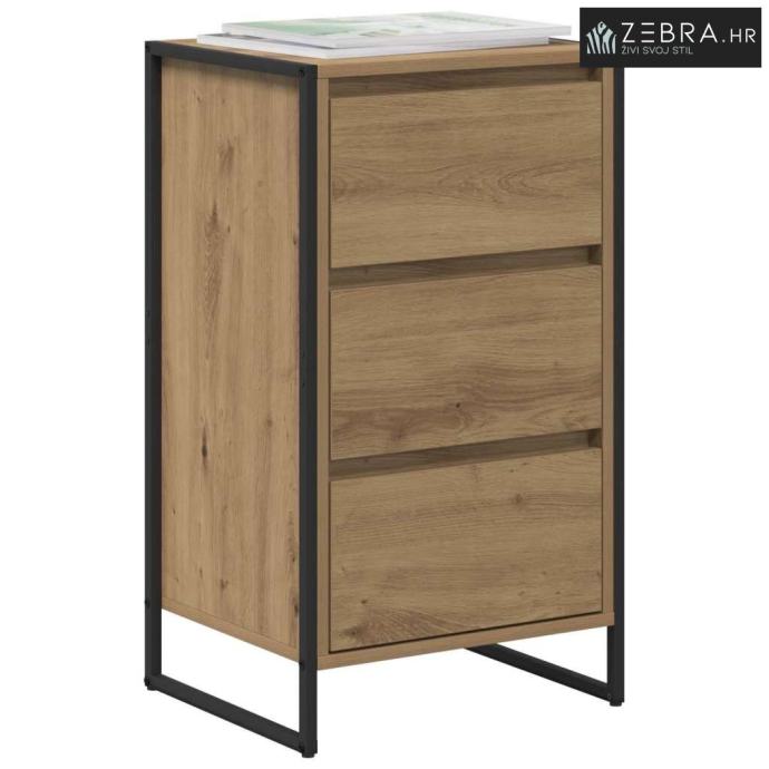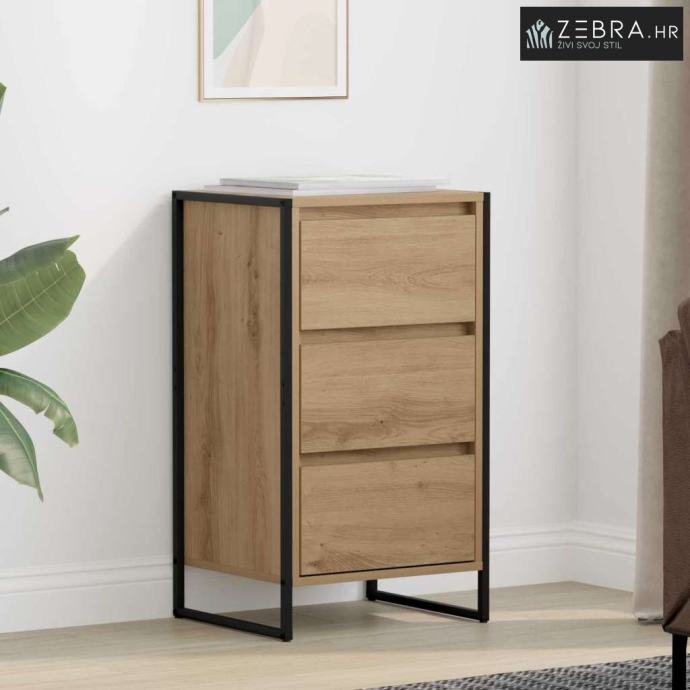 Čvrsto konstruirano drvo: Komoda je napravljena od konstruiranog drveta koje pruža pouzdanu čvrstoću i stabilnost. Ovaj materijal oduševljava svojim prirodnim drvenim teksturama, što dizajnu dodaje stil, poboljšavajući izgled svakog prostora. Robusne čelične noge: Čelične noge osiguravaju stabilnost, tako da komoda ostaje čvrsto na mjestu. Čelična konstrukcija daje dodatnu čvrstoću, pa može izdržati razne upotrebe, od ukrašavanja do pohrane osnovnih stvari. Prostrana pohrana: S raznim odeljcima i policama, komoda nudi dovoljno prostora za organizaciju svih vaših stvari. Idealan je za sve, od knjiga i DVD-ova do posuđa i malih aparata, pomažući vam da održite red. Moderne dizajnerske nijanse: Minimalistički izgled komode savršeno se uklapa u njen industrijski stil, dajući chic završni izgled koji se uklapa u tradicionalne i moderne prostore. Njen jednostavan dizajn i suptilna elegancija čine je svestranim komadom za razne rasporede i stilove. Jednostavno održavanje: Komoda se lako održava, s površinama koje možete obrisati suhom krpom. Ova jednostavnost osigurava da ostane u odličnom stanju, čineći je dugotrajnim dodatkom vašem namještaju. Boja: Umjetnička hrastovina