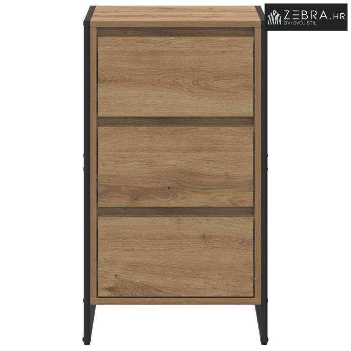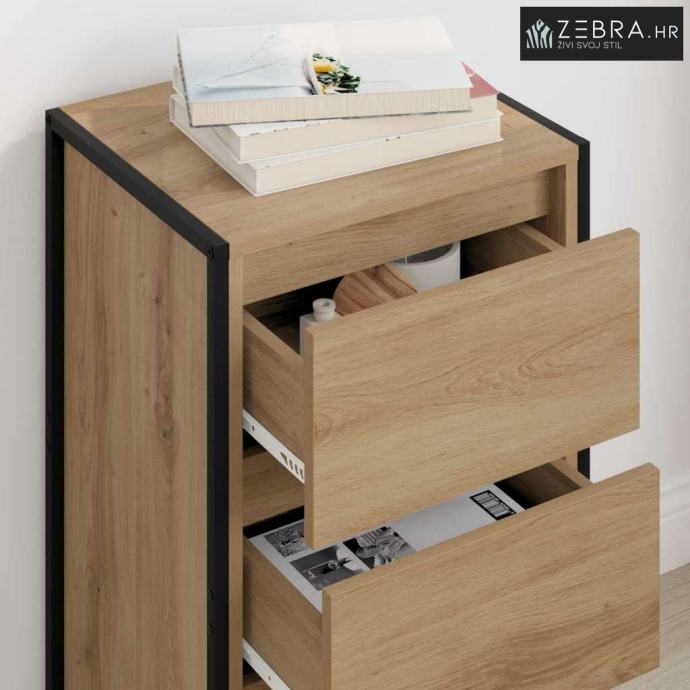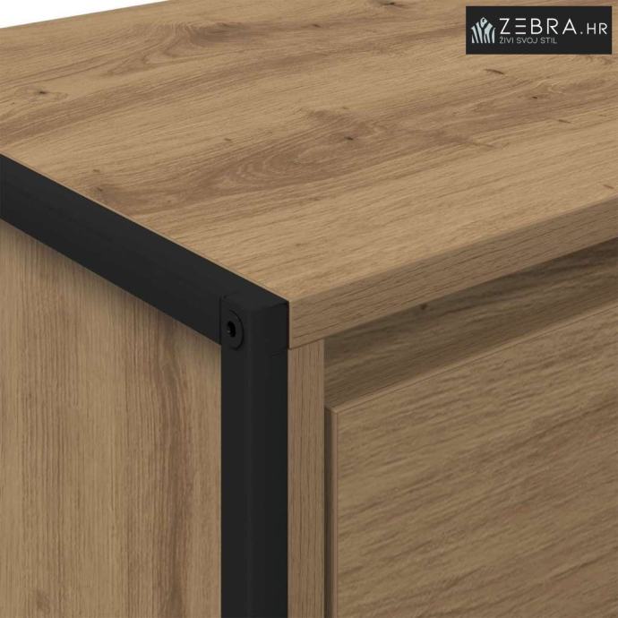 Ova industrijska komoda sjajno spaja funkcionalnost sa stilom i donosi urban moderni izgled, idealan za suvremene interijere. Namijenjena je dnevnim boravcima, s elegantnim oblikom koji unosi sofisticiranost u svaki prostor. Kombination konstruiranog drveta i čelika stvara ne samo rješenje za pohranu, nego i istaknuti komad s fantastičnim dizajnom. S dovoljno prostora za pohranu, komoda će vam pomoći da zadržite nered pod kontrolom, dok njen pravokutni oblik odlično odgovara različitim stilovima uređenja.