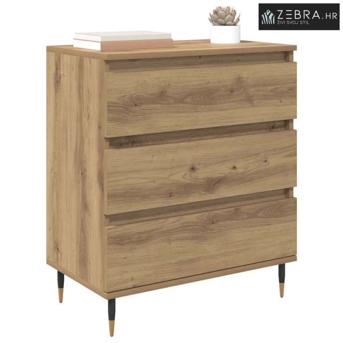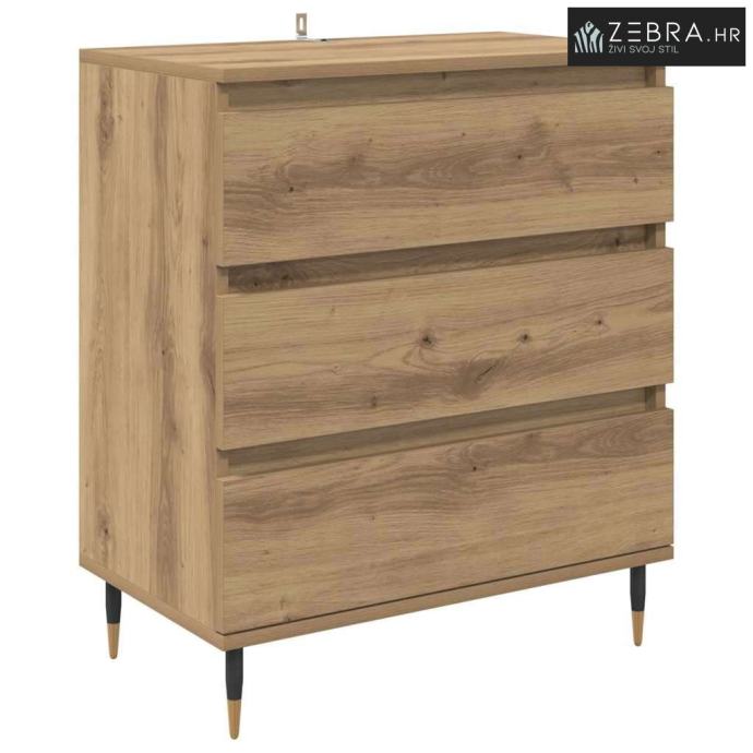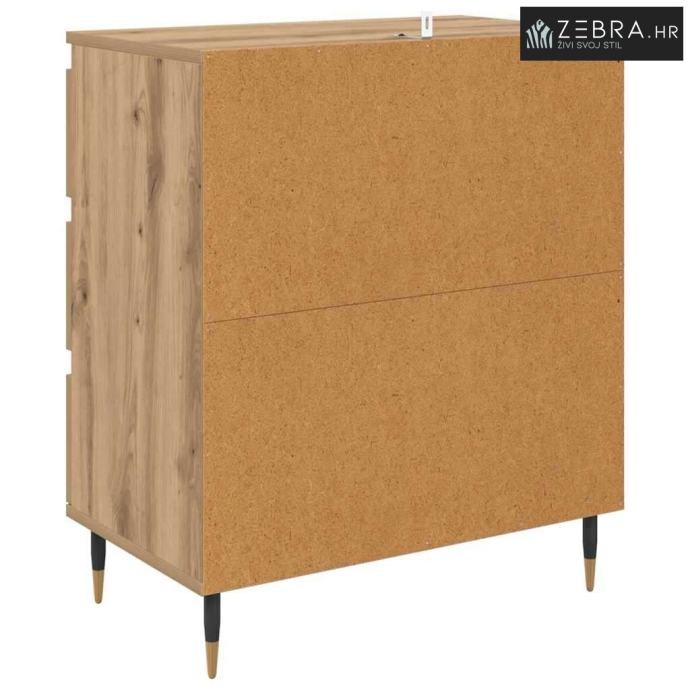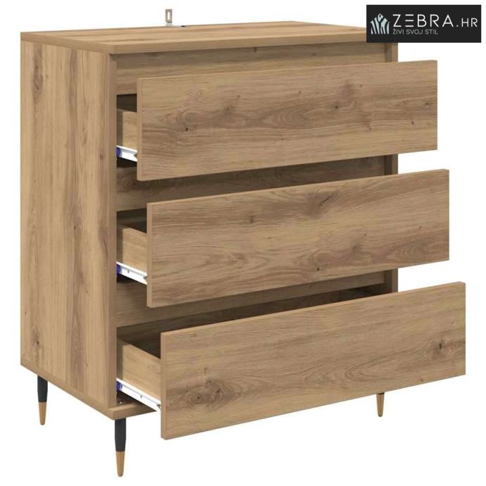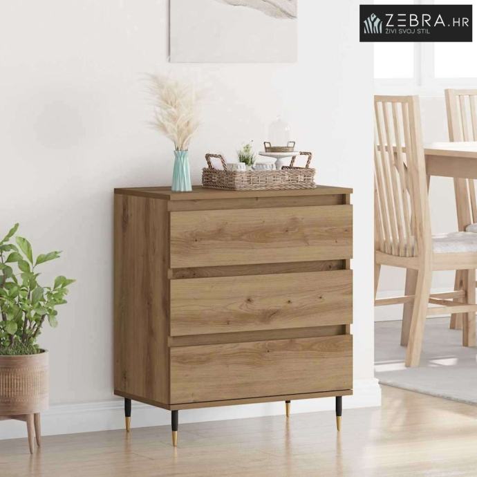 Funkcionalan dizajn: Komoda dolazi s tradicionalnim ladicama koje olakšavaju pristup, a konusne metalne noge joj daju moderan izgled. Ove komponente ne samo da dodaju stil, već i poboljšavaju stabilnost, čineći je savršenim rješenjem za razne interijere. Ladice osiguravaju lako organiziranje uz održavanje urednog izgleda.