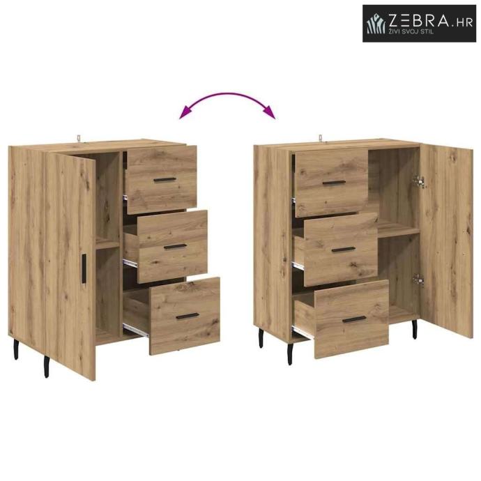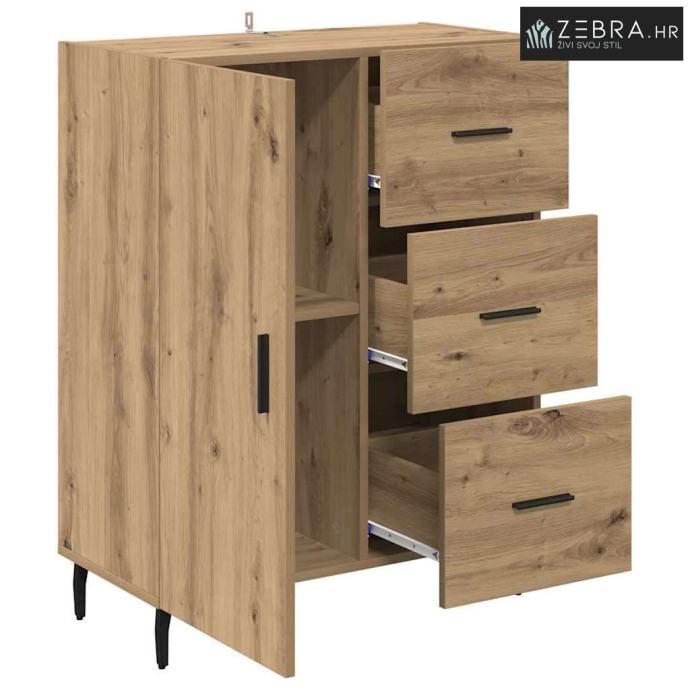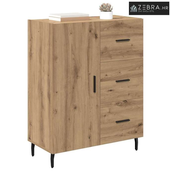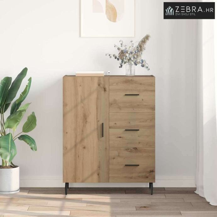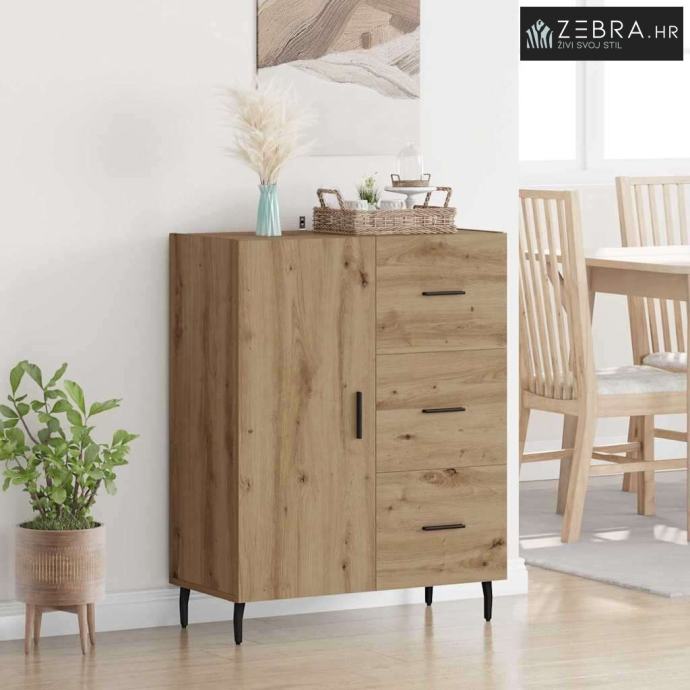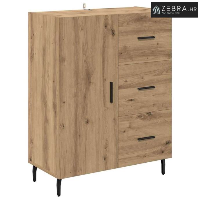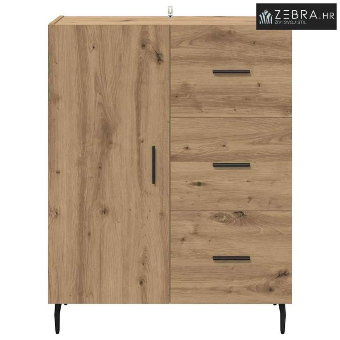 Izrada od inženjerskog drva Ova komoda je napravljena od vrhunskog inženjerskog drva, s lijepim izgledom i izdašnom izdržljivošću. Materijal je otporan na uvijanje i skupljanje, pa je površina uvijek stabilna. Njegova fina struktura dodaje moderan i privlačan izgled, savršeno za elegantne prostore. Ugrađene police Komoda dolazi s integriranim policama koje pružaju organizirano skladište. Policama možete odložiti stvari i održati prostor urednim. Ovaj dizajn omogućava izlaganje i sigurno pohranjivanje i većih i manjih predmeta. Dizajn saber nogu Komoda je podignuta na stylish saber nogama od željeza, koje nude dobru stabilnost. Ove noge dodaju klasičan šarm, dopunjujući bilo kakvu modernu dekoraciju. Rezultat je komoda koja je i moderna i čvrsta. Mekan mehanizam vrata Vrata su opremljena šarkama pa se lako otvaraju i zatvaraju. Ovaj dizajn olakšava pristup pohranjenim stvarima, zadržavajući elegantan izgled komode. Ručke s mat završetkom su udobne i dodaju moderan štih. Osnovne upute za njegu Da bi komoda ostala u vrhunskom stanju, briši je vlažnom krpom. Provjeri da visoki komadi budu čvrsto pričvršćeni za zid, kako bi se spriječilo prevrtanje. Uz pravilnu njegu, komoda će dugo trajati i zadržati bezvremenski izgled. Boja: Umjetnički hrast
