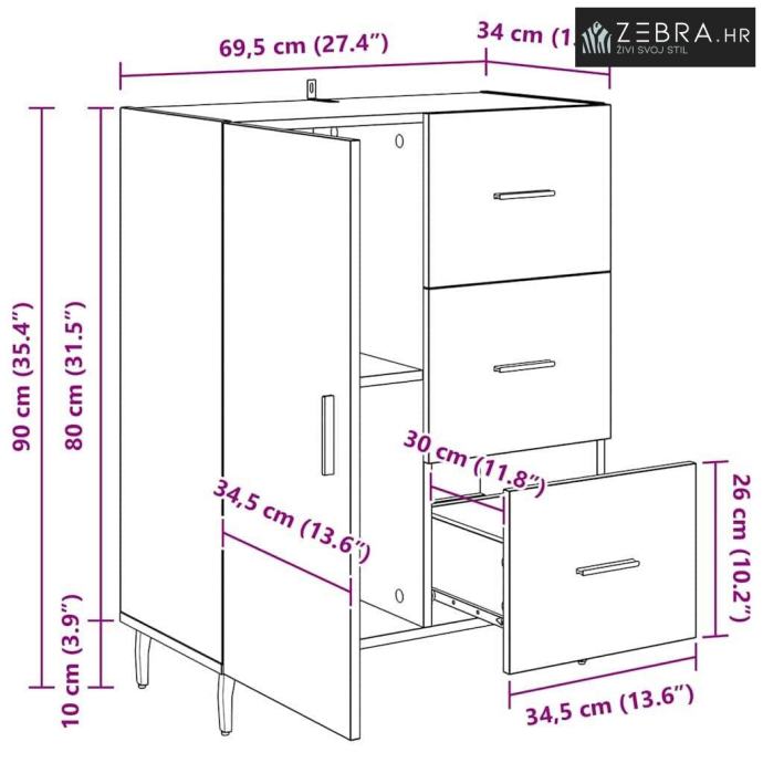Sveukupne dimenzije: 69,5 x 34 x 90 cm (D x Š x V)