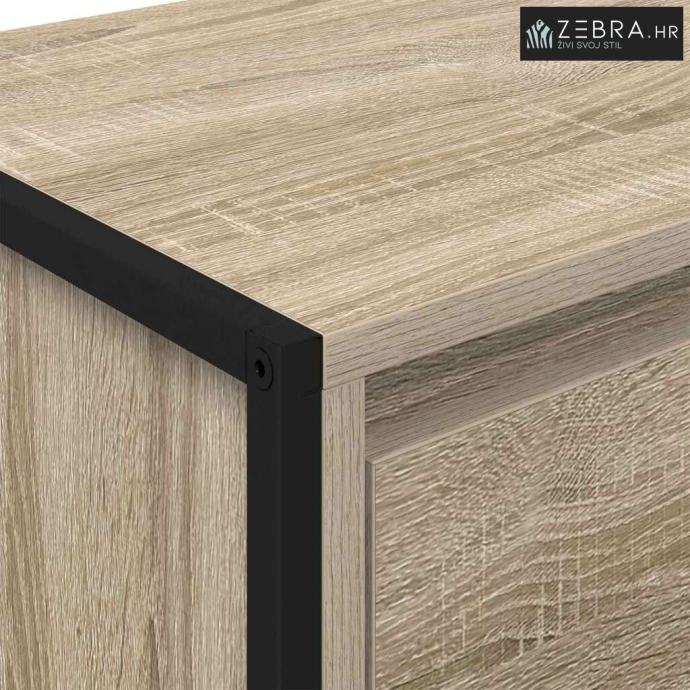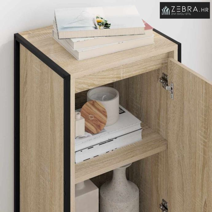 Materijali: Ovaj kredenc koristi čvrsto konstruirano drvo, otporno na uvijanje, s glatkom završnom obradom koja doprinosi trajnosti i estetskoj privlačnosti. Čelične noge osiguravaju stabilnost i podržavaju robusnu konstrukciju. Uključeni dijelovi: Kredenc dolazi s unutarnjim policama i odjeljcima, pružajući praktičan prostor za održavanje reda s lako dostupnim rješenjima za pohranu. Od knjiga do ukrasnih predmeta, sve je lako organizirano. Funkcionalne karakteristike: Pravilnog oblika, ovaj kredenc lako se uklapa u većinu prostora, pomažući održavanju urednog rasporeda. Izrađen je da traje, što znači minimalno održavanje i dugotrajnu upotrebu. Preporučene upotrebe: Idealan za dnevne boravke, kredenc omogućuje organizaciju doma, bilo da ga koristite za osobne uspomene ili kao TV stalak. Svestranost dizajna omogućava mu prilagodbu raznim ulogama. Njega i održavanje: Održavajte kredenc brisanjem suhom krpom. Izbjegavajte oštre predmete i vlagu kako biste očuvali sjaj površine. Ovi jednostavni koraci osiguravaju njegovu dugovječnost u vašem domu. Boja: Sonoma