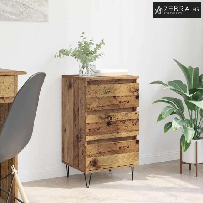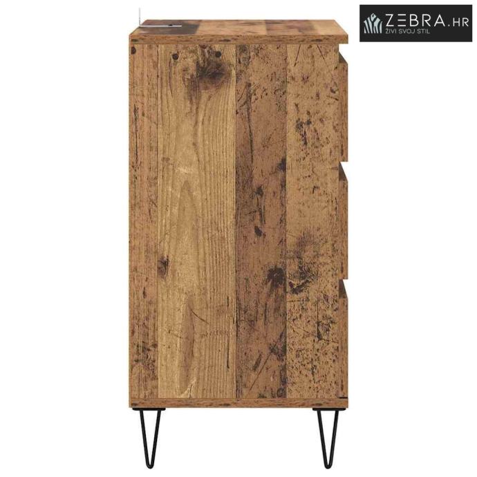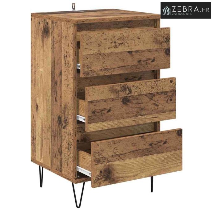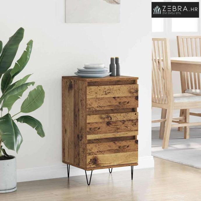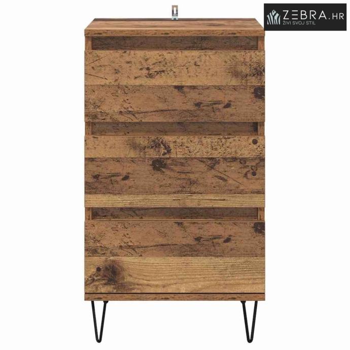 Materijali: Izrađena od konstruiranog drva i željeza, ova komoda pokazuje izdržljivost i rustikalni šarm. Drvo daje teksturiranu završnu obradu, dok željezo doprinosi stabilnosti. Ova kombinacija ne samo da dodaje estetski šarm nego i dugotrajne performanse, čime je postaje isplativa investicija. Uključene komponente: S ladicama na kugličnim ležajevima, komoda osigurava glatku upotrebu svaki put kad trebate nešto izvaditi. Ladice i površina su od konstruiranog drva, što jača dizajn. Čelične noge u obliku ukosnice dodaju industrijski chic dodir i pružaju pouzdanu podršku. Karakteristike / Funkcija / Dizajn: Komoda je dizajnirana tako da se lako čisti, možete je održavati brzim brisanjem vlažnom krpom. Uključuje sigurne upute za sastavljanje, osiguravajući stabilan položaj. Veliki kapacitet pohrane omogućuje vam da učinkovito organizirate prostor. Preporučena uporaba: Idealna za dnevne boravke, ova komoda je funkcionalna kao rješenje za pohranu i izlaganje. Njezina rustikalna estetika čini je savršenim izborom za one koji žele spojiti eleganciju s praktičnošću. Bilo da pohranjujete društvene igre, knjige ili dekor, komoda donosi stil i funkcionalnost. Njega i održavanje: Održavanje uključuje jednostavno brisanje vlažnom krpom. Za stabilnost, posebno ako imate djecu, preporučuje se pričvrstiti komodu za zid. Upute za sastavljanje zahtijevaju dvoje ljudi i odvijač, što osigurava glatku i sigurnu instalaciju. Boja: Staro drvo