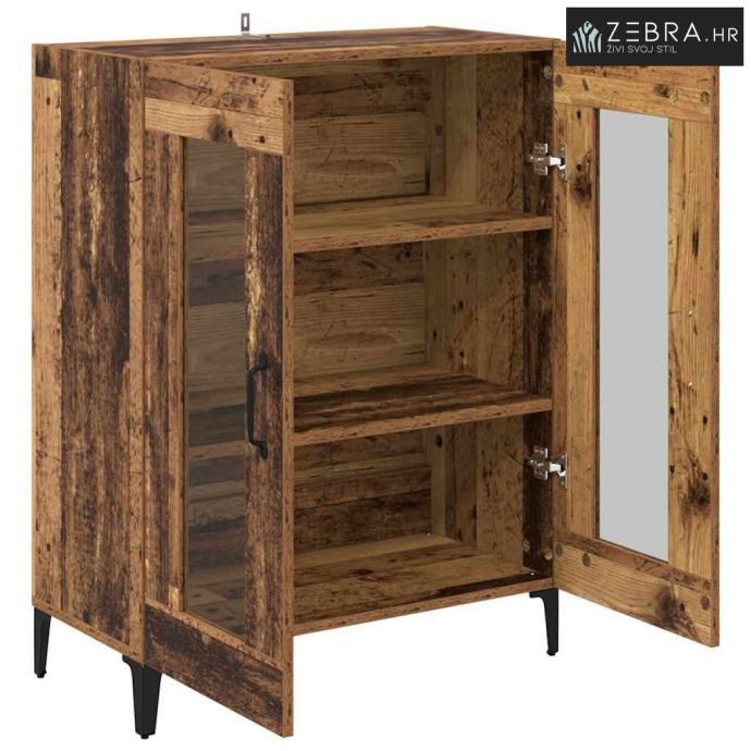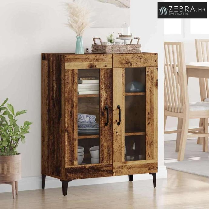 Materijali: Ovaj sideboard je napravljen od konstruiranog drva s metalnim komponentama, što mu daje robustan i dugotrajan izgled. Estetski privlačno i čvrsto, idealan je centralni komad u svakom prostoru. Željezne komponente osiguravaju čvrstoću kroz vrijeme, čak i uz čestu upotrebu. Uključeni Komponenti: Staklena vrata omogućuju vam da vidite sadržaj iznutra, podižući njegov moderni stil. Police pružaju dobru osnovu za razne dekoracije, posuđe i druge bitne stvari, a narančasta stražnja ploča lijepo se uklapa. Karakteristike / Funkcija / Dizajn: Ovaj sideboard ima mnogo prostora za pohranu, pa će sve biti organizirano. Ručke s mat crnom završnom obradom dodaju šik izgled, dok njegove noge u obliku strijele daju stabilnost i stil. Preporučene Upotrebe: Savršen za dnevne boravke ili blagovaonice, nudi sjajna rješenja za pohranu i ukrašavanje. Njegov elegantan, minimalistički dizajn dobro se uklapa u moderne prostore, usklađujući se sa raznim stilovima i držeći važne stvari organiziranim. Održavanje i Čišćenje: Održavanje je lagano, a samo malo njege će ga održati u dobrom stanju. Obrišite površine vlažnom krpom i pazite da ga postavite uz zid za dodatnu stabilnost. Ove mjere pomažu da sideboard ostane atraktivan i funkcionalan dugi niz godina. Boja: Staro drvo