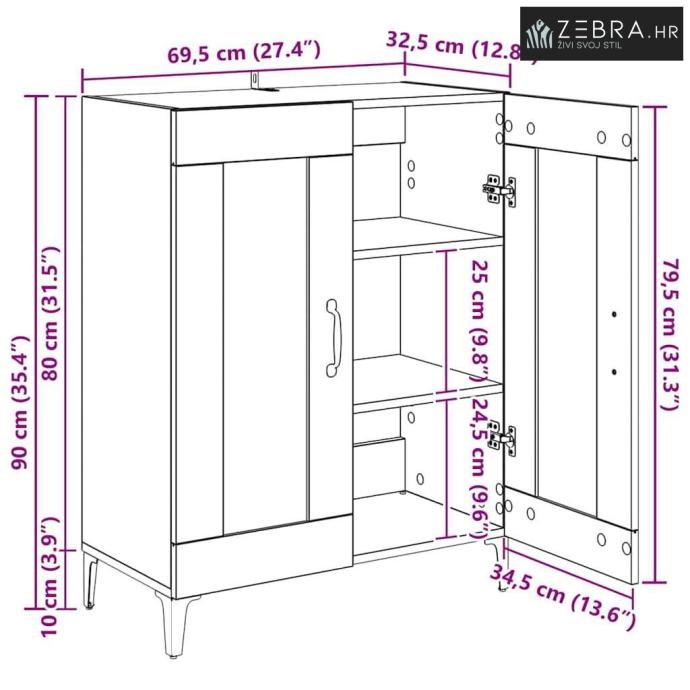Sveukupne dimenzije: 69,5 x 34 x 90 cm (D x Š x V)