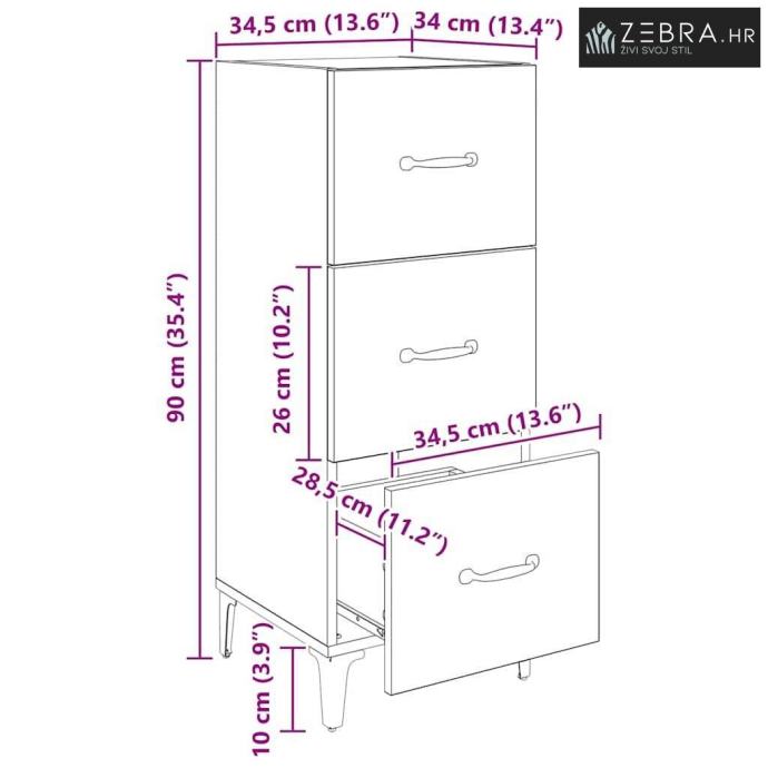 Sveukupne dimenzije: 34,5 x 34 x 90 cm (D x Š x V)
