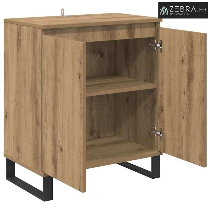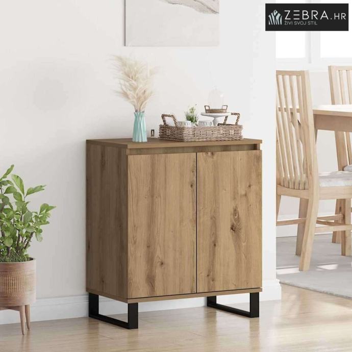 Izgradnja od konstruiranog drva Komoda je izrađena od konstruiranog drva, nudeći chic izgled i trajnost koja se krije u svakodnevnom korištenju. Njena otpornost na ogrebotine čini je savršenom za aktivne domaćinstva, dok čvrsta izrada donosi stabilnost. Fleksibilne opcije pohrane Opremljena policama i vratima sa šarkama, komoda nudi razne mogućnosti pohrane za posuđe, knjige ili kućne dodatke. Svaki odjeljak je pametno osmišljen kako bi se maksimalno iskoristio prostor, nudeći uredan način da organiziraš svoje stvari. Suvremene čelične noge Njene čelične kvadratne noge pružaju robusnu podlogu, ističući moderni stil s industrijskim dodirom. Ove noge osiguravaju da komoda čvrsto stoji i dugo traje. Lako održavanje Održavanje je jednostavno. Samo obriši površinu suhom krpom da zadržiš njen izgled. Uključeni uređaj za pričvršćivanje zida pomaže u sprečavanju prevrtanja, osiguravajući sigurnost tvog doma. Udobno i funkcionalno Dizajn uključuje udobnost, savršena je za organizaciju blagovaonskih potrepština ili izlaganje dekorativnih predmeta, čineći je svestranom dopunom tvog modernog enterijera. Boja: Umjetnički hrast