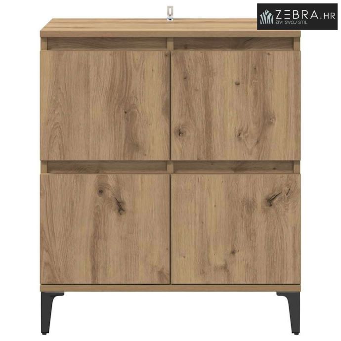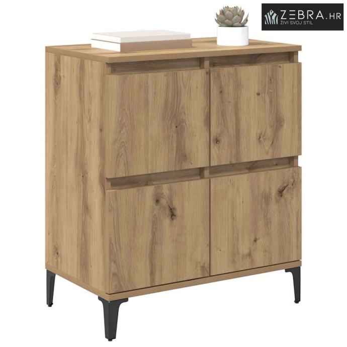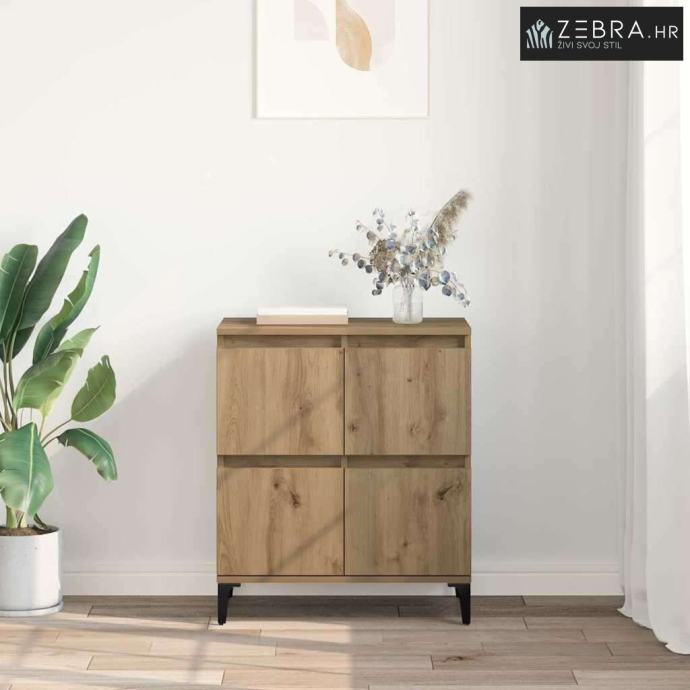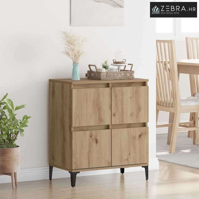 Materijali: Mahom izrađen od drva, ovaj kabinet ima grub teksturu koja mu daje rustikalan završni izgled, naglašavajući njegovu zemljanu notu. Drvo je čvrsto i dodaje autentičnost tvojoj dekoraciji doma. Uključeni dijelovi: Dolazi s vratima na šarkama i mat crnim gumbima koji mu daju dozu klase. Konusne noge su dizajnirane za stabilnost, pa čvrsto stoji na različitim površinama. Karakteristike / Funkcija / Dizajn: Kabinet ima praktična vrata na šarkama koja se lako otvaraju, a nude čak i obilno skladištenje. Konusne noge dodaju modernu notu klasičnom izgledu. Preporučene upotrebe: Ovaj svestrani kabinet odlično funkcionira u blagovaonicama ili dnevnim prostorima, uklapajući se u razne stilove dekoracije. Savršen je za obiteljske domove i šik apartmane, uvijek spreman da drži tvoje bitne stvari organiziranim. Njega i održavanje: Održi ovaj kabinet u dobrom izgledu brisanjem suhom krpom. Izbjegavaj vosak na lakiranim završnim slojevima i redovito ga briši mekom suhom krpom kako bi mu sačuvao šarm netaknutim. Boja: Umjetnički hrast