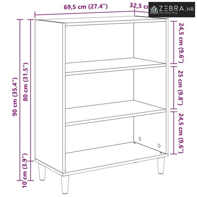 Sveukupne dimenzije: 69,5 x 32,5 x 90 cm (D x Š x V)