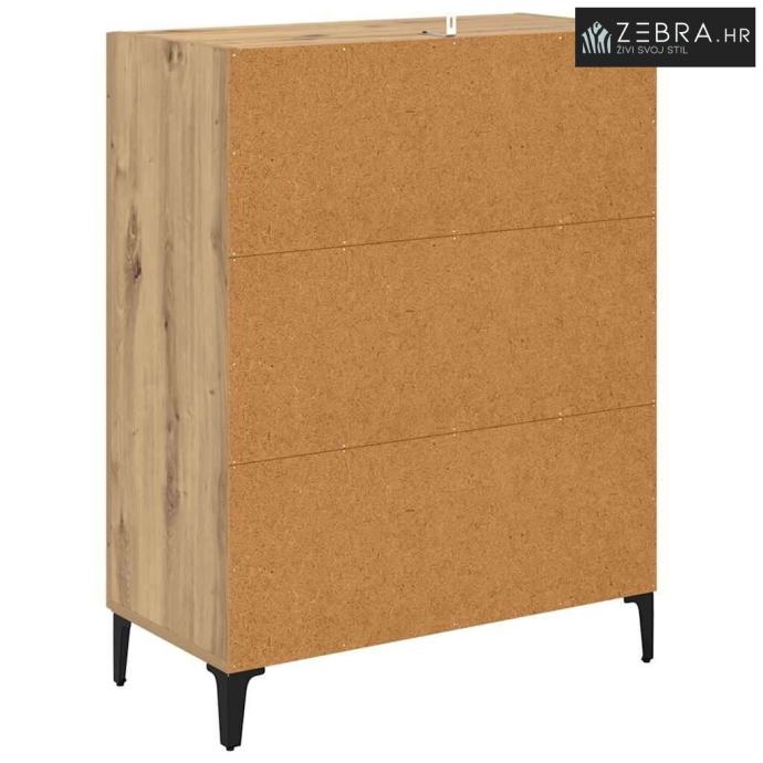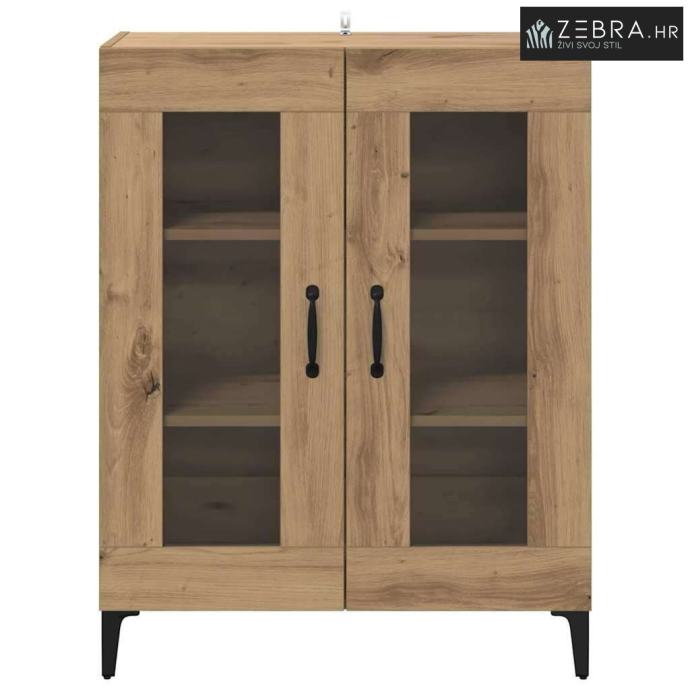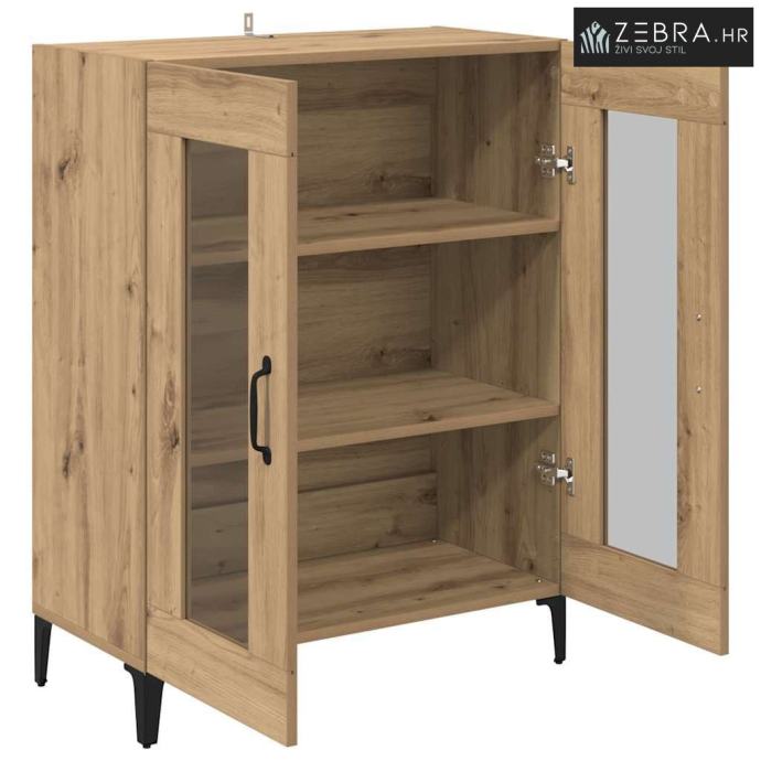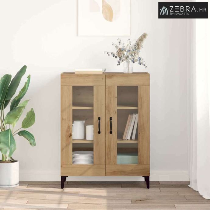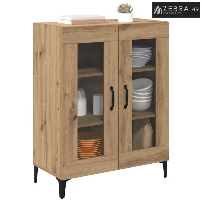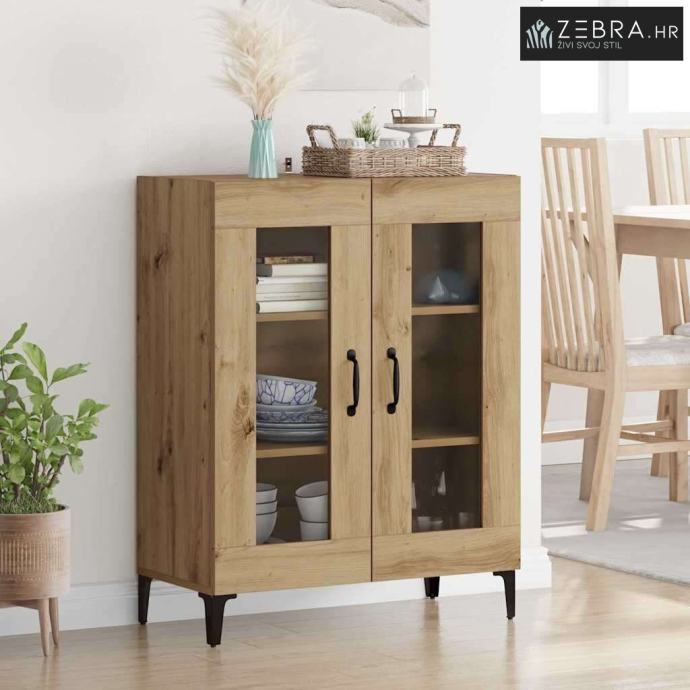 Materijali: Ovaj sideboard je napravljen od konstruiranog drva s metalnim komponentama, što mu daje robustan i dugotrajan izgled. Estetski privlačno i čvrsto, idealan je centralni komad u svakom prostoru. Željezne komponente osiguravaju čvrstoću kroz vrijeme, čak i uz čestu upotrebu. Uključeni Komponenti: Staklena vrata omogućuju vam da vidite sadržaj iznutra, podižući njegov moderni stil. Police pružaju dobru osnovu za razne dekoracije, posuđe i druge bitne stvari, a narančasta stražnja ploča lijepo se uklapa. Karakteristike / Funkcija / Dizajn: Ovaj sideboard ima mnogo prostora za pohranu, pa će sve biti organizirano. Ručke s mat crnom završnom obradom dodaju šik izgled, dok njegove noge u obliku strijele daju stabilnost i stil. Preporučene Upotrebe: Savršen za dnevne boravke ili blagovaonice, nudi sjajna rješenja za pohranu i ukrašavanje. Njegov elegantan, minimalistički dizajn dobro se uklapa u moderne prostore, usklađujući se sa raznim stilovima i držeći važne stvari organiziranim. Održavanje i Čišćenje: Održavanje je lagano, a samo malo njege će ga održati u dobrom stanju. Obrišite površine vlažnom krpom i pazite da ga postavite uz zid za dodatnu stabilnost. Ove mjere pomažu da sideboard ostane atraktivan i funkcionalan dugi niz godina. Boja: Umjetnički hrast