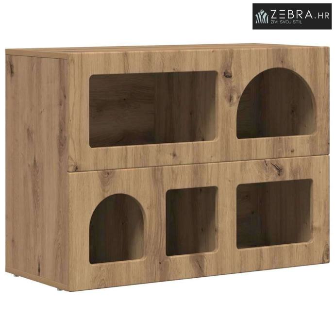 Materijali: Ova moderna komoda je od konstruiranog drva, što joj daje lijep izgled i dugotrajnost. Izdržljivost i estetika ovog materijala osiguravaju da komoda zadrži svoj oblik i izgled koliko god je koristili. Uključene komponente: Komoda dolazi s više policama, što olakšava organizaciju raznih predmeta. Ove police su fleksibilne za pohranu posuđa, knjiga ili ukrasnih predmeta. Imaš lakši pristup svim stvarima i možeš ih lako vidjeti. Karakteristike / Funkcija / Dizajn: Njena svestranost omogućava korištenje kao bufet u blagovaonici ili kao konzola u dnevnom boravku. Čvrsta konstrukcija podržava široku paletu predmeta, a nudi jednostavnost i funkcionalnost dok uživaš u modernom životu. Preporučena uporaba: Savršena za blagovaonice i dnevne boravke, komoda dodaje stil tvom domu i lijepo se uklapa s drugim namještajem. Također je korisna u hodnicima ili ulazima, dodajući funkcionalnost i izgled svaki prostor. Njega i održavanje: Da sačuvaš njen izgled, izbjegavaj jake kemikalije dok čistiš. Preporučuje se brisanje vlažnom krpom, bez prejakog trljanja kako bi duže trajala i zadržala sjaj bez ikakvih oštećenja. Boja: Umjetnički hrast