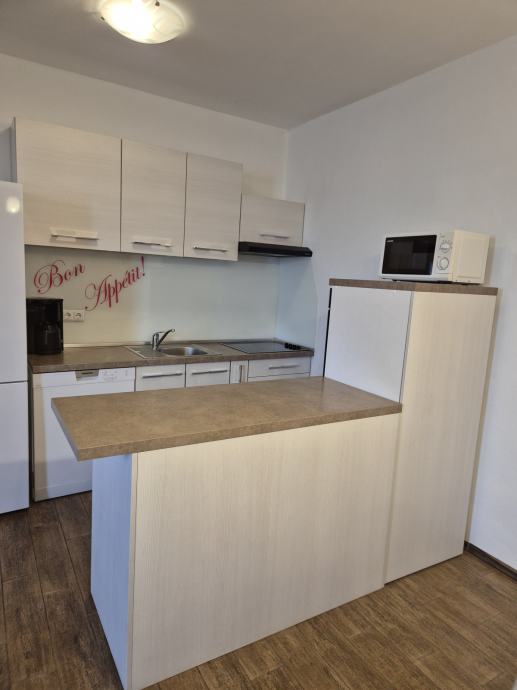 Kuhinja se sastoji od slijedećih elemenata: ladičar šir 60, uski klizni element šir 15, element za sudoper šir 70 cm. Na otoku su visoki element za rernu šir 60 (vis 146), ladičar šir 61,5 i element s policom šir 61,5. Ima i još 1 element s policom šir 33,5. Može se sve drugačije sklopiti uz kupnju nove radne ploče. Elementi na otoku su iste visine kao ostali kada im se spuste nogice i makne pozadina. Viseći elementi: 1 kom šir 60 i visine 71; 2 kom šir 44,5 i visine 71; 1 kom šir 60 i visine 35,5. Kuhinja je talijanske proizvodnje s usporivačima na ladicama i vratima. Zvati nakon 17 h.