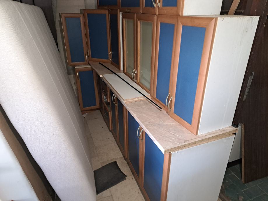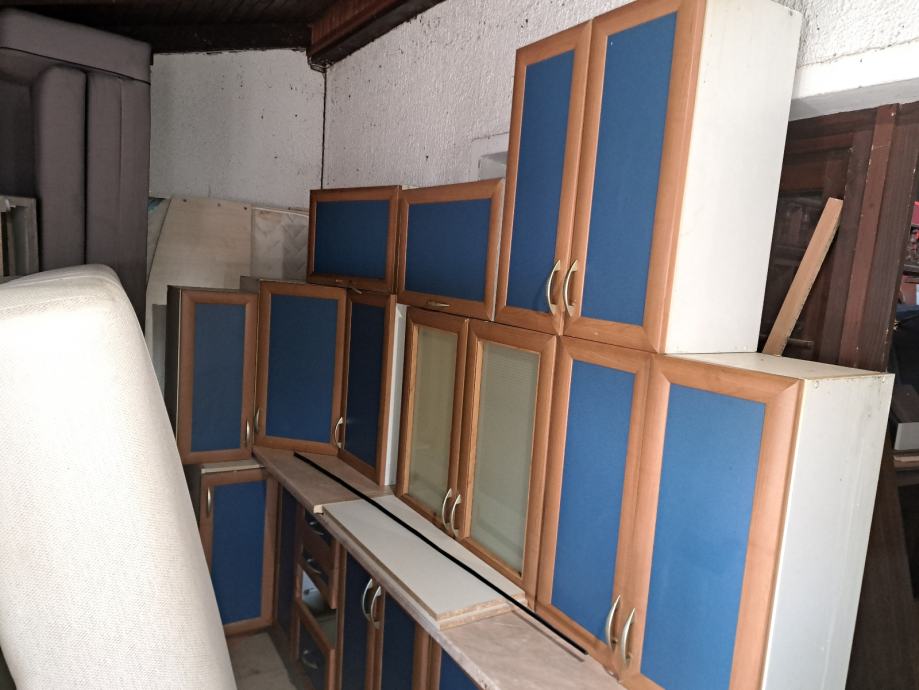 Kuhinja sirina 270cm donji dio gornji dio 450 cm,visina gornjih elemenata 72 cm,kuhinja moze biti i ravna i kutna,u cijeni je sudoper sa pipom i mikrovalka