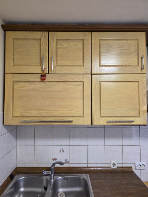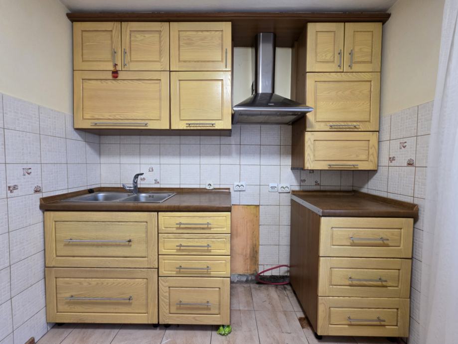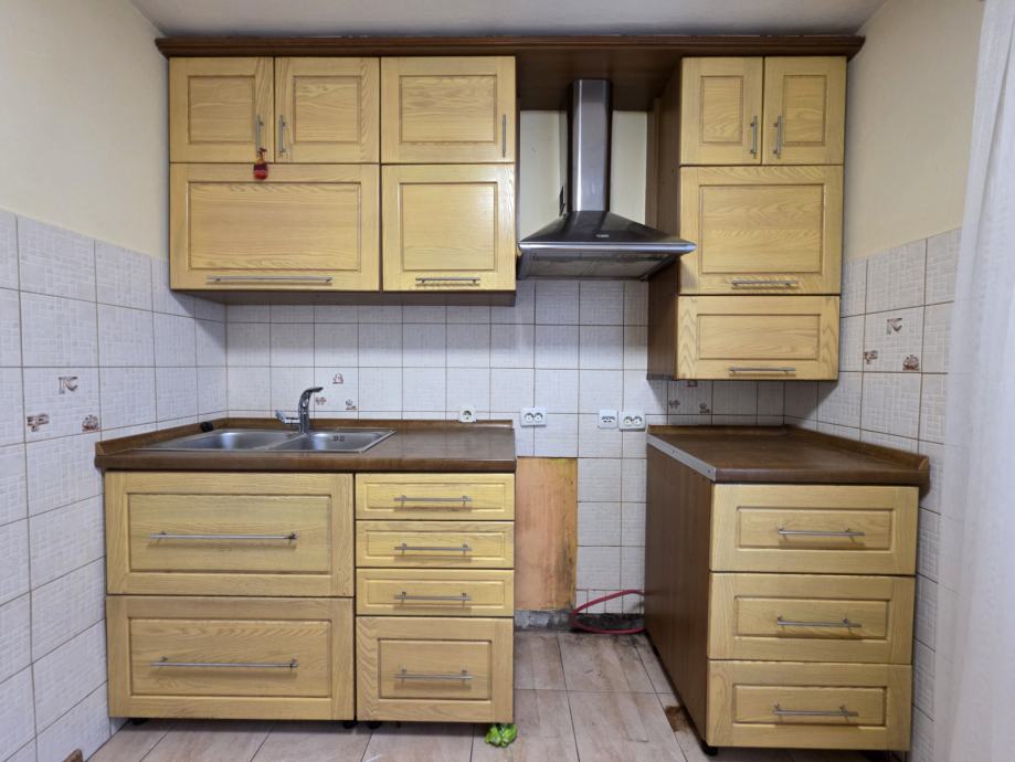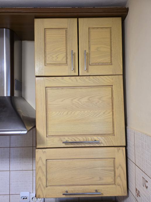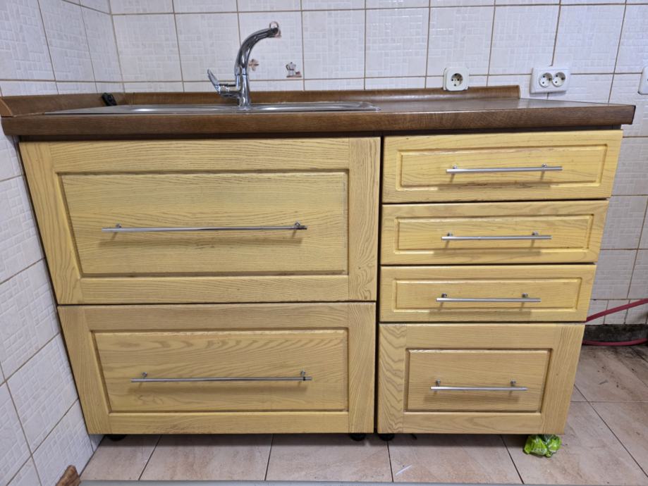 Kuhinjski elementi, puno drvo fronte, u odličnom stanju, rabljeno. Širina 1m(sudoper sa pipom i sifonom)+50cm ladice+60cm ladice te viseći elementi visoki u istoj dimenziji te Faber napa