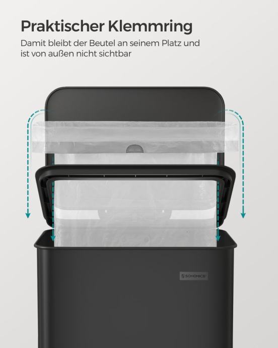 Poklopac kante za smeće zatvara se polako, tiho i nježno. Nema naglog zatvaranja tijekom uporabe! Ova kanta za otpatke praktičan je pomoćnik za zbrinjavanje otpada. Poklopac kuhinjske kante za smeće može se držati otvorenim tijekom kuhinjskih aktivnosti tako da se potpuno otvori rukom. Kako biste zatvorili poklopac, jednostavno ga preklopite rukom. Uključujemo 15 prilagođenih vreća za smeće (šifra 050A) tvrtke SONGMICS koje su savršene za ovu kantu za smeće tako da je spremna za trenutnu upotrebu. Izrađena od visokokvalitetnog čelika, kuhinjska kanta za smeće od 40 litara otporna je na hrđu. Može se lako obrisati radi čišćenja. Kanta za otpad je opremljena steznim prstenom. To znači da vrećica za smeće ostaje čvrsto na mjestu i nije vidljiva izvana. Osim toga, kanta s pedalom nema unutarnju kantu i stoga nudi 20% dodatnog unutarnjeg prostora za otpad. Za sve informacije nazovite na broj telefona 092/399-75-19