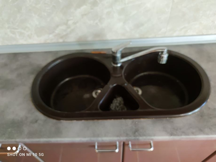 Kuhinjska radna ploča (kao nova) 288x60, sa kvalitetnim dvodijelnim sudoperom, pipom i pločom za kuhanje.