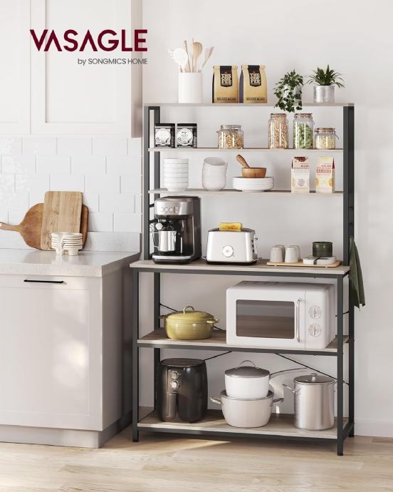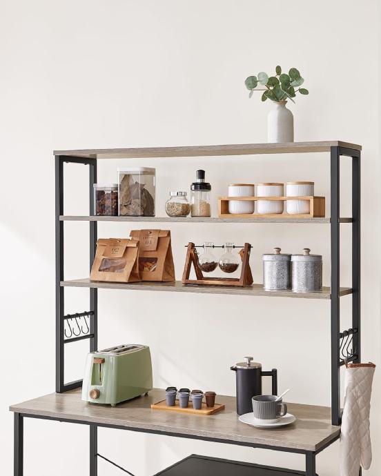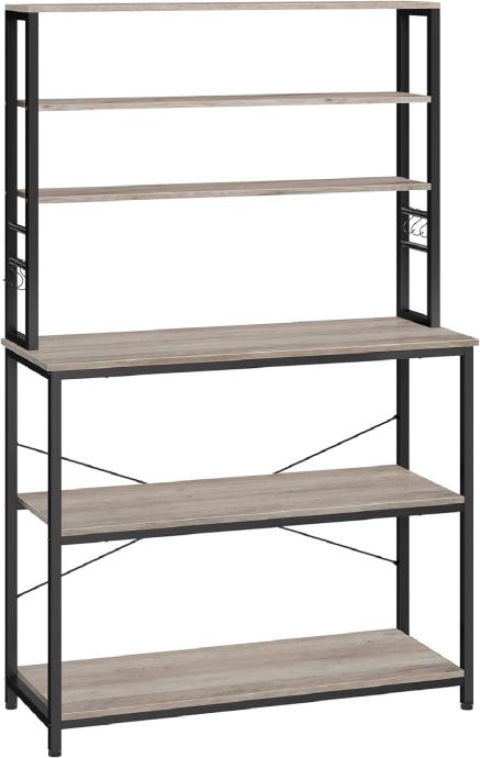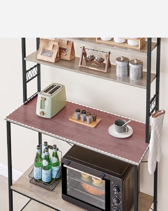 Kuhinjska polica Stalak Polica Polica za mikrovalnu Stalak 6 polica i 6 kuka Čelični okvir za mikrovalnu pećnicu Industrijski dizajn 40 x 60 x 167 cm Sivo crna