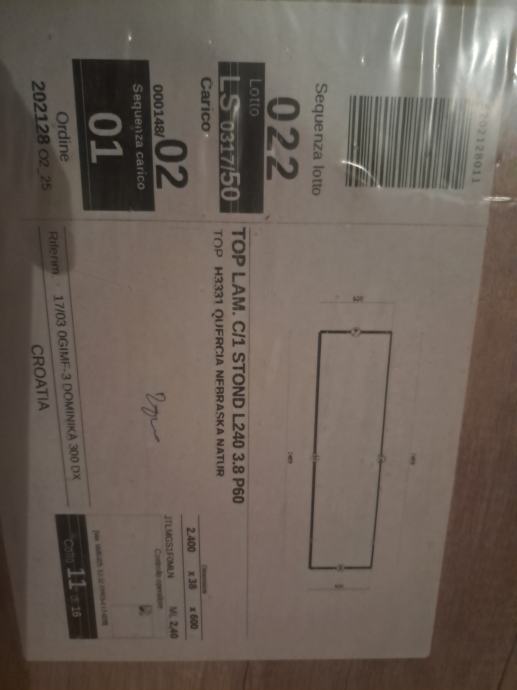Prodajem novu radnu ploču zapakiranu dimenzije 240x60x3,8 cm. Uz ploću poklanjam srebrne kutne lajsne 2 kom. dužine 240 i 200 cm.