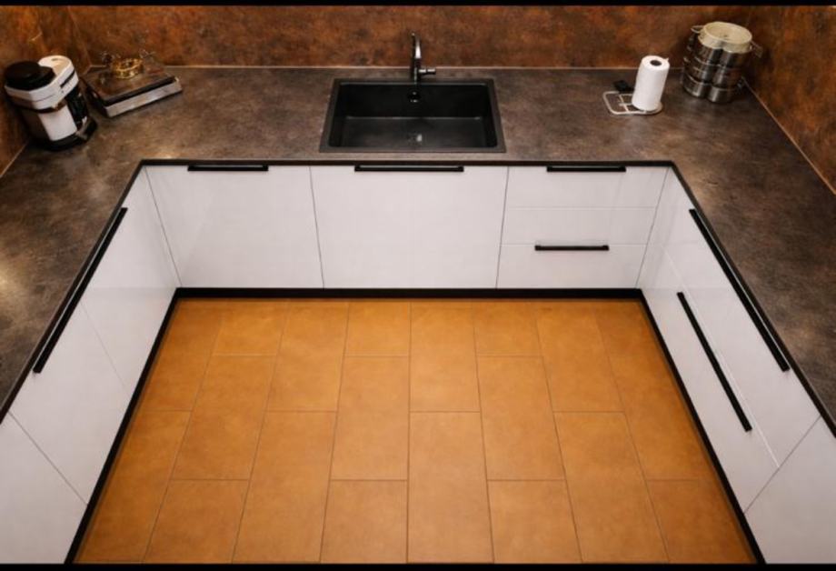 Nova radna ploča pripremljena za postavu ali estetski ne paše uz postojeću kuhinju.