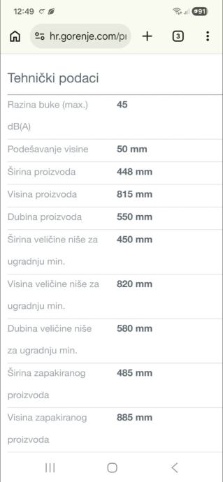 Veličina perilice - vidi zadnju sliku