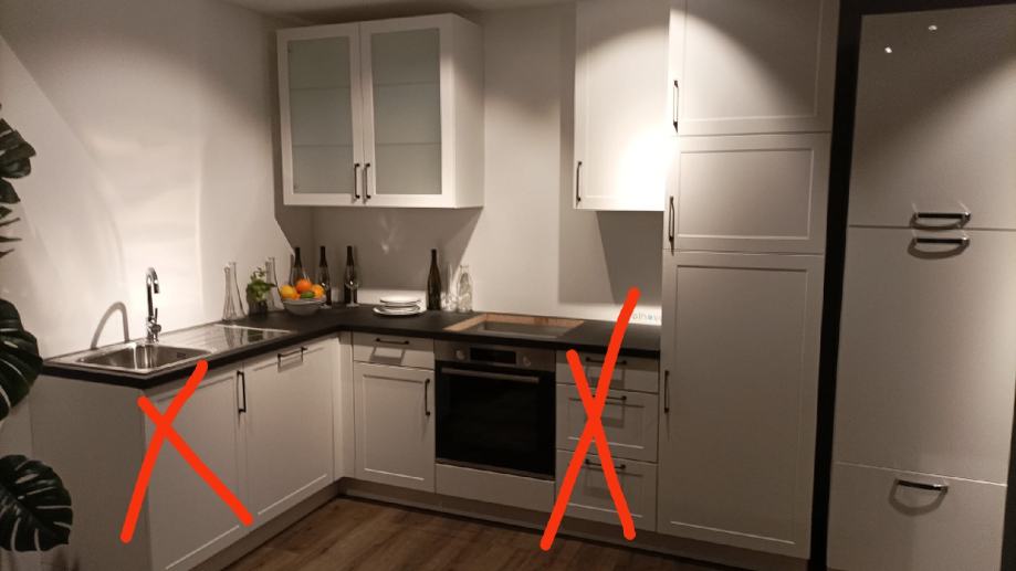 Prodaju se kuhinjski elementi (slika postava iz Lesnine) bez radne ploče, ladičara i elementa za sudoper.