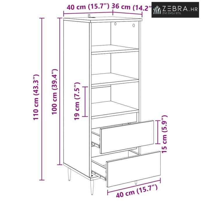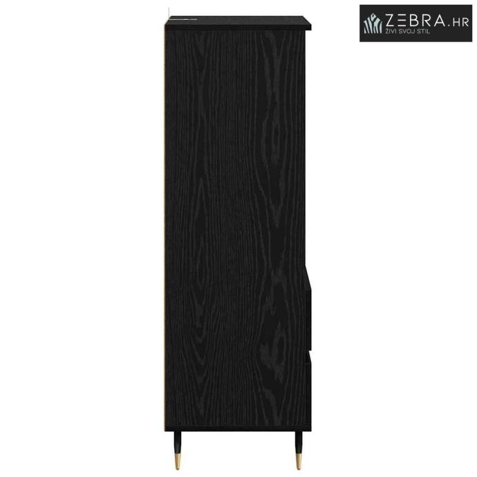 Konstrukcija od konstruiranog drveta: Visoki ormar je napravljen potpuno od konstruiranog drveta koje je otporno na habanje, nudeći čvrstu konstrukciju koja traje. S glatkom površinom, poboljšava moderni izgled ormara. Funkcionalnost polica: Police unutar ormara pružaju jednostavno rješenje za skladištenje. Izrađene su od konstruiranog drveta, savršene za pohranu svega, od knjiga do dekoracija. Moderna estetika: S čistim linijama i minimalnim detaljima, ormar donosi moderni stil koji odgovara suvremenim interijerima. Ovaj ormar je elegantan komad koji poboljšava dizajn prostora. Obilna skladišna potencijal: S velikim odjeljcima i tradicionalnim ladicama, ovaj visoki ormar nudi puno mjesta za sve stvari, pomažući u organizaciji dnevnog boravka. Sužene metalne noge: Ovaj ormar se stabilizira suženim metalnim nogama, što pridonosi njegovoj čvrstoći i stilu. Boja: Crni hrast