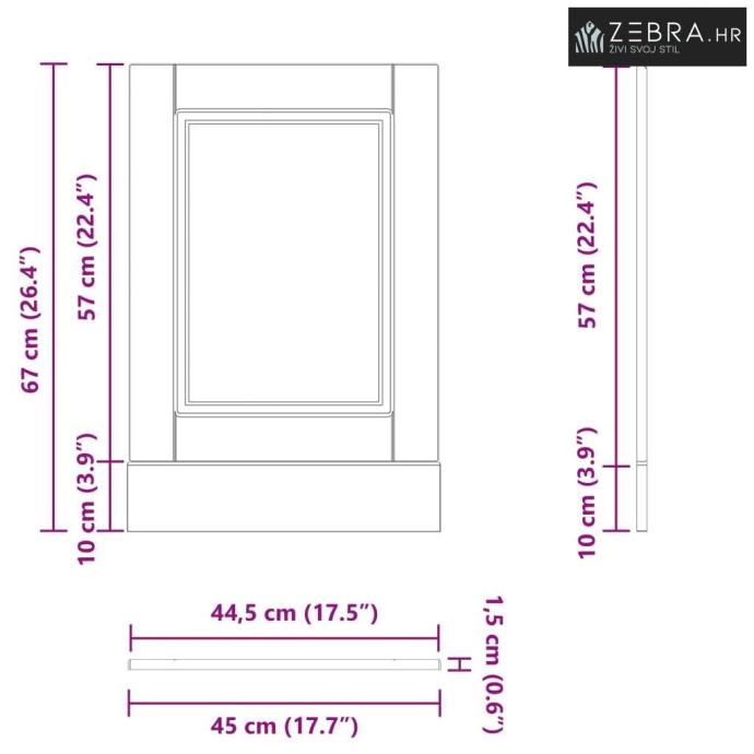 Sveukupne dimenzije: 45 x 1,5 x 67 cm (D x Š x V)
