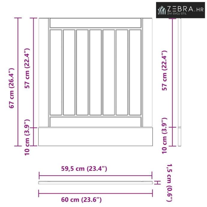 Sveukupne dimenzije: 60 x 1,5 x 67 cm (D x Š x V)