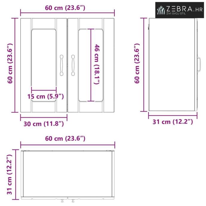 Sveukupne dimenzije: 60 x 31 x 60 cm (D x Š x V)
