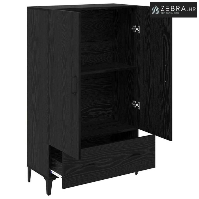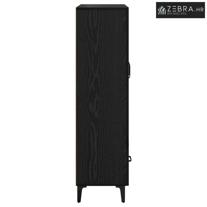 Izdržljiva konstrukcija Ova visoka komoda, izrađena od konstruiranog drva, nudi dugotrajnu i pouzdanu opciju namještaja. Njena čvrsta struktura podnosi svakodnevnu upotrebu, stvarajući stabilno i izdržljivo rješenje za skladištenje knjiga, dekoracija ili kućanskih potrepština. Željezne noge osiguravaju čvrstu podršku na različitim podovima, čineći je svestranom za svaku sobu. Svestrano skladište Ova visoka komoda dizajnirana je uz praktičnost u vidu, sa policama i ladicama na kugličnim ležajevima. Prostrane police savršeno se uklapaju u modernu estetiku, pružajući dovoljno prostora za skladištenje i izlaganje predmeta. Ugrađene ladice glatko se otvaraju, idealne za pohranu manjih stvari ili sakrivanje nereda, održavajući domaćinstvo organiziranim. Moderni stil Ova visoka komoda drži se modernog dizajnerskog etosa, sa svojim čistim linijama i minimalnim ukrasima. Mat crna boja na ručkama i nogama nadopunjuje njen elegantan izgled od konstruiranog drva, čineći je savršenom za suvremene interijere i poboljšavajući estetiku tvog prostora. Praktične značajke Klizna vrata na ovoj visokoj komodi omogućuju lak pristup pohranjenim predmetima, dok ručke pružaju udoban zahvat, spajajući funkciju i stil. Dizajnirana za unutarnju upotrebu, zadržava svoju eleganciju i funkcionalnost unutar kontroliranog okruženja, održavajući vizualnu privlačnost i praktične potrebe u tvom domu. Jednostavna njega Održavanje ove visoke komode je lako. Samo je obriši vlažnom krpom kako bi zadržala svoj besprijekoran izgled. Moguće je sastavljanje prilikom isporuke, a pričvršćivanje za zid sprječava prevrtanje, nudeći ti mir u užurbanom kućanstvu. Sva uputstva za sastavljanje su uključena za jednostavno postavljanje. Boja: Crni hrast