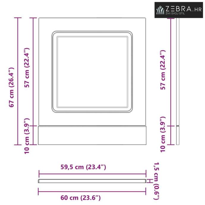 Sveukupne dimenzije: 60 x 1,5 x 67 cm (D x Š x V)