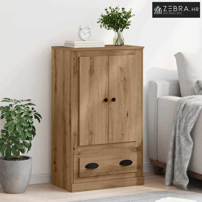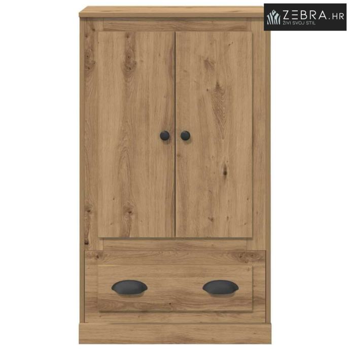 Izdržljivo konstruirano drvo: Ovaj ormar je napravljen od konstruiranog drva, materijala poznatog po dugotrajnosti. Osigurava stabilnost i dobar izgled kroz vrijeme, čime nudi pouzdan komad namještaja koji izdrži svakodnevnu upotrebu i uklopi se u razne stilove interijera. Konstrukcija vrata na šarke: Klasična vrata na šarke omogućuju jednostavan pristup unutrašnjosti. Ovaj mehanizam dizajniran je za dugotrajnu upotrebu, osiguravajući glatko korištenje. Šarke su robusne i izdržavaju ponovnu upotrebu, aktivnosti pohrane čineći jednostavnima. Funkcionalne ugrađene police: Ormar dolazi s vlastitim ugrađenim policama koje omogućuju lakšu organizaciju. Ova funkcija povećava opcije skladištenja dok vanjski izgled ostaje sofisticiran. Police nude dovoljno prostora za razne predmete, osiguravajući uredno okruženje. Glatke ladice s kugličnim ležajevima: Ladice opremljene kugličnim ležajevima lako se pomiču, omogućujući jednostavan pristup bez buke. Ove ladice dodaju praktičnost svakodnevnoj upotrebi, savršene su za organiziranje manjih stvarčica. Mat završna obrada vrata i ručke: Mat završna obrada na ručkama i šarkama daje profinjen dodir, bez ometanja modernog izgleda ormara. Osigurava osjećaj kvalitete koji nadopunjuje ukupnu eleganciju i dizajn. Boja: Umjetnički hrast