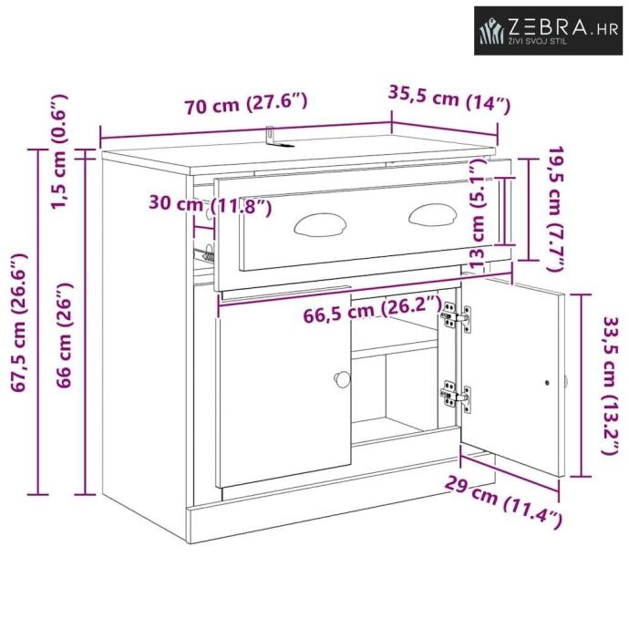 Sveukupne dimenzije: 70 x 35,5 x 67,5 cm (D x Š x V)