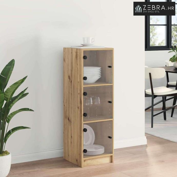 Izdržljiv dizajn: Ovaj ormar je izrađen od visokokvalitetnog konstruiranog drveta, čvrst je i trajan, otporan na svakodnevno korištenje. Njegova čvrsta konstrukcija pruža stabilnost potrebnu za pouzdano skladištenje, izvrstan izbor za one koji žele dobar balans između forme i funkcije. Prekrasna staklena vrata: Prozirna staklena vrata dodaju dašak elegancije, omogućavajući vam da prikažete sadržaj dok zadržavate uredan izgled. Ovi elementi čine ovaj komad središnjim dijelom vaše prostorije, savršeno se uklapajući s drugim namještajem. Svestrano skladištenje: Opremljen policama i odjeljcima, ova jedinica nudi puno opcija za organizaciju, prilagodljiva za sve, od kolekcionarskih predmeta do kuhinjskih stvari. S dimenzijama 35 x 37 x 109 cm, zadovoljava sve vaše potrebe za skladištenje dok čuva prostor urednim. Rustikalna estetika: Prikazuje elemente rustikalnog dizajna, kombinira grubu ljepotu s modernom praktičnošću, čime postaje omiljen izbor za eklektični stil. Ovo privlači poglede gostiju i obogaćuje atmosferu u prostoru. Praktični savjeti održavanja: Za dodatnu sigurnost, pričvrstite ormar za zid. Održavanje je jednostavno - obrišite površinu suhom krpom i izbjegavajte abrazive kako biste sačuvali njegovu završnu obradu. Boja: Umjetnički hrast