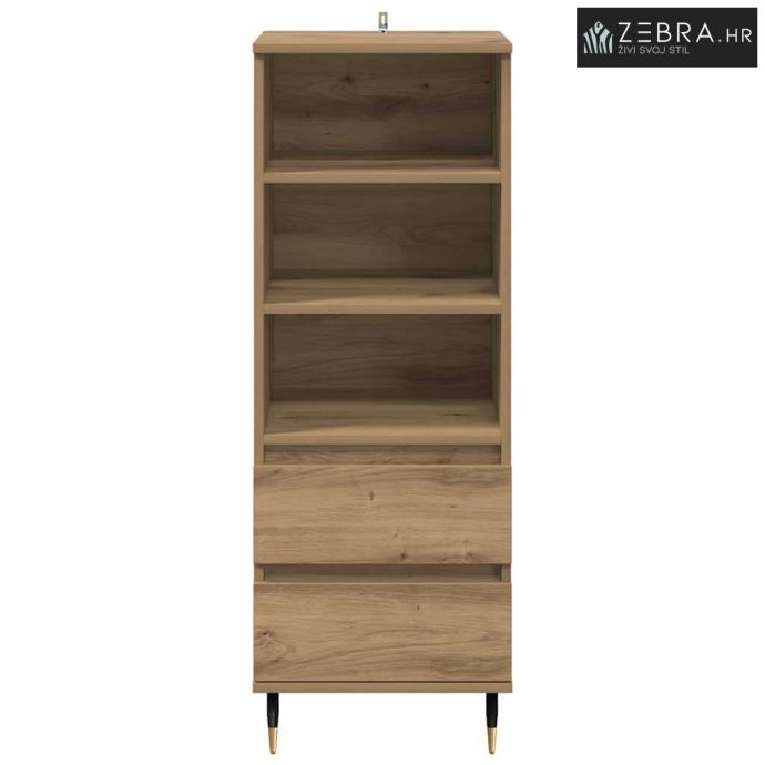 Konstrukcija od konstruiranog drveta: Visoki ormar je napravljen potpuno od konstruiranog drveta koje je otporno na habanje, nudeći čvrstu konstrukciju koja traje. S glatkom površinom, poboljšava moderni izgled ormara. Funkcionalnost polica: Police unutar ormara pružaju jednostavno rješenje za skladištenje. Izrađene su od konstruiranog drveta, savršene za pohranu svega, od knjiga do dekoracija. Moderna estetika: S čistim linijama i minimalnim detaljima, ormar donosi moderni stil koji odgovara suvremenim interijerima. Ovaj ormar je elegantan komad koji poboljšava dizajn prostora. Obilna skladišna potencijal: S velikim odjeljcima i tradicionalnim ladicama, ovaj visoki ormar nudi puno mjesta za sve stvari, pomažući u organizaciji dnevnog boravka. Sužene metalne noge: Ovaj ormar se stabilizira suženim metalnim nogama, što pridonosi njegovoj čvrstoći i stilu. Boja: Umjetnički hrast