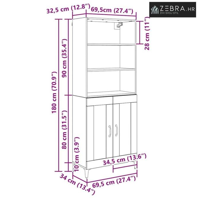 1 x Vrh za visoki ormar: 69,5 x 34 x 90 cm (DxŠxV)