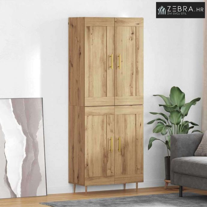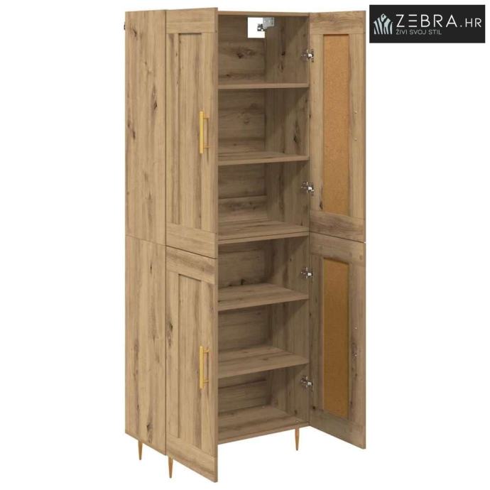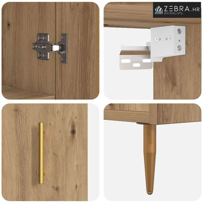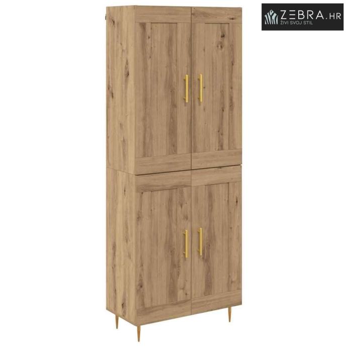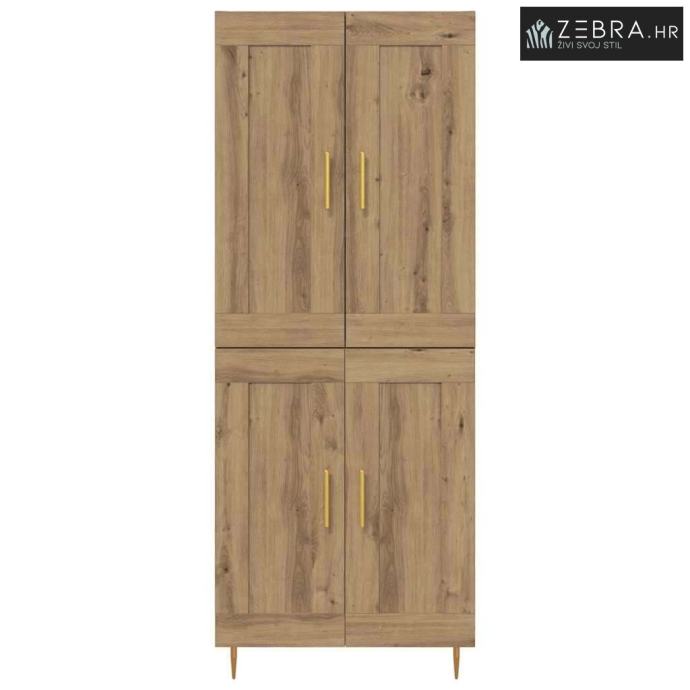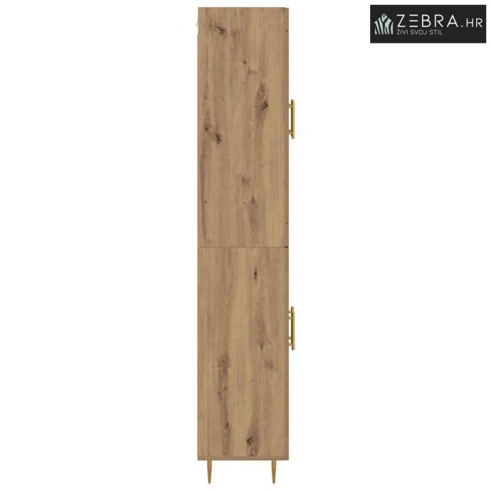 Zlatni dodaci i ručice Okršeni zlatnim detaljima, visoki ormar ima metalne bar ručice koje unose moderni kontrast s drvenom strukturom. Ova kombinacija dodatno podiže dojam cjelokupnog dizajna.