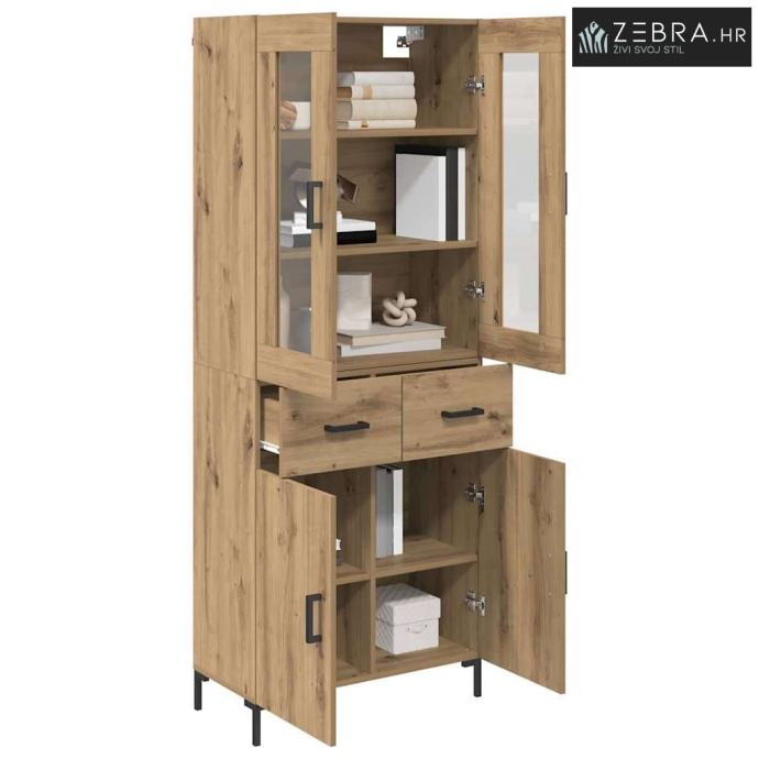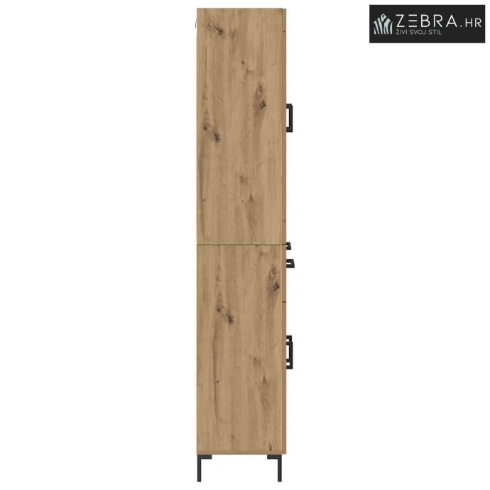 Ovaj visoki ormar je savršena dodatak svakom dnevnom boravku ili prostoru gdje su potrebna elegantna i efikasna rješenja za pohranu. S minimalističkim linijama, uklapa se u suvremeni stil nudi funkcionalnost koja štedi prostor. Zidna montaža omogućava uštedu podnog prostora, što ga čini odličnim rješenjem za manje prostorije. Kombinacija drva i stakla pruža čvrst i vizualno lagan komad koji je i funkcionalan i estetski privlačan. Ovaj ormar pomaže u organizaciji, čineći vaš prostor urednijim i privlačnijim.